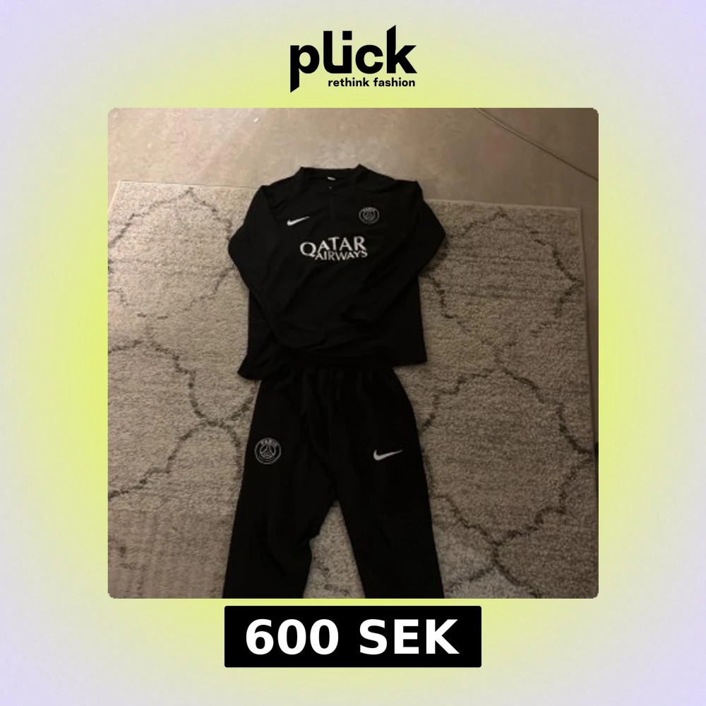 Svart långärmad fotbollströja från Nike med Paris Saint-Germain-logga på bröstet och Qatar Airways-tryck. Tröjan har en stilren design med vit Nike-swoosh och är gjord i ett lätt, sportigt material som andas. Perfekt för dig som gillar PSG och vill ha en snygg och bekväm tröja.