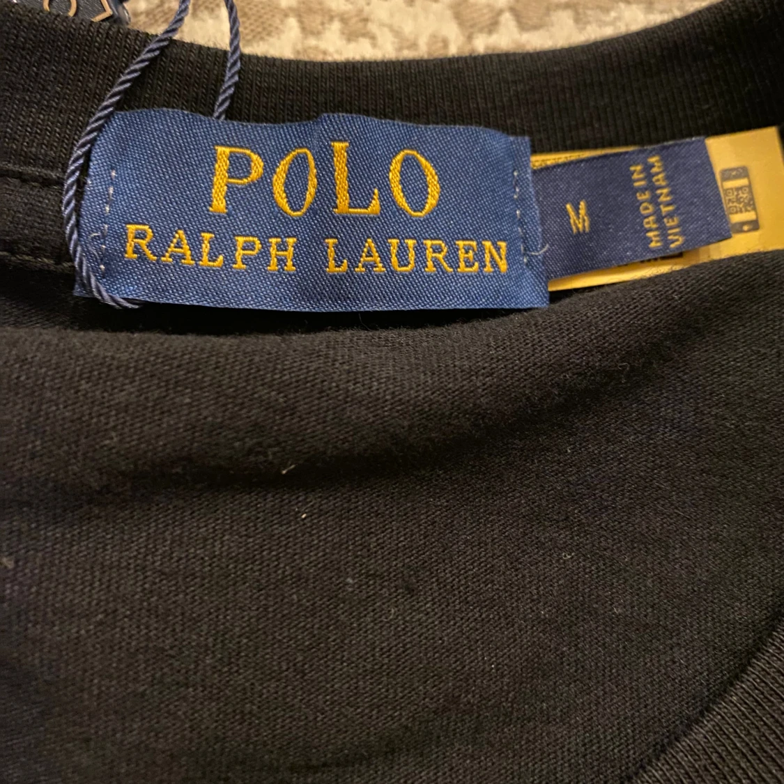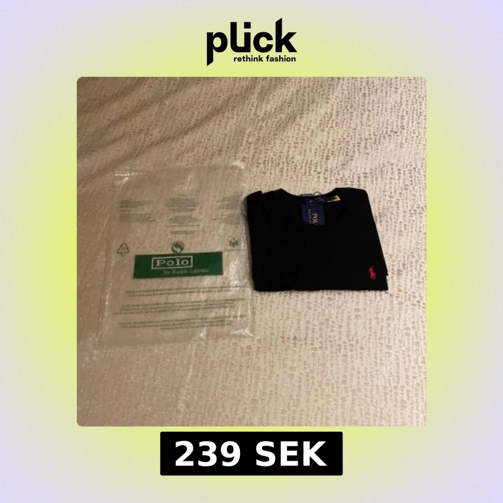 Svart t-shirt från Polo Ralph Lauren i storlek M. Klassisk design med rund hals och korta ärmar, tillverkad i mjuk bomull. På bröstet finns den ikoniska röda Polo-loggan broderad. Perfekt för dig som gillar stilrena och tidlösa plagg.