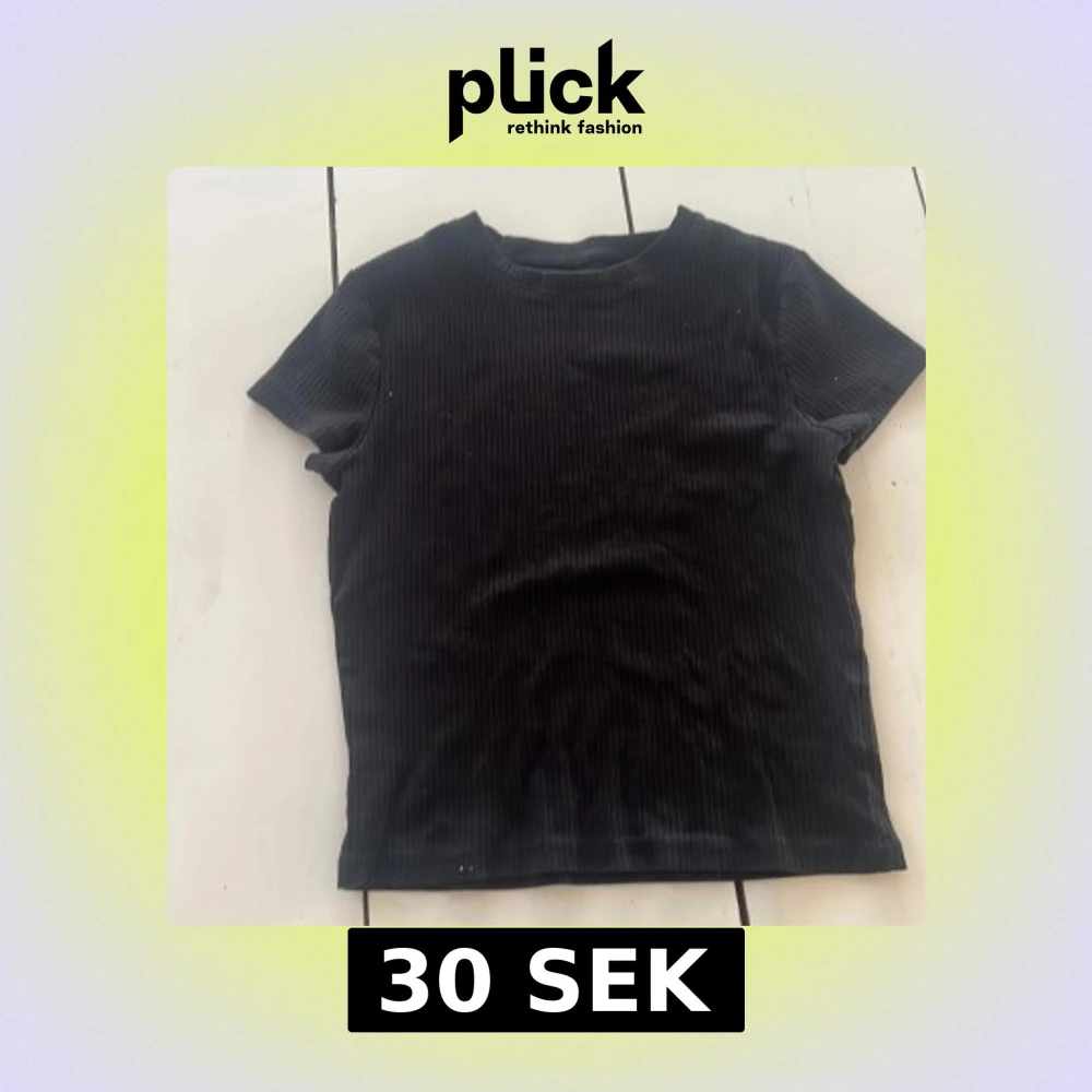 Svart ribbad t-shirt från H&M Basic med korta ärmar och rund hals. T-shirten har en enkel och clean look med smal ribbstruktur i tyget, vilket ger en snygg och modern känsla. Perfekt att matcha med jeans eller kjol för en chill stil.