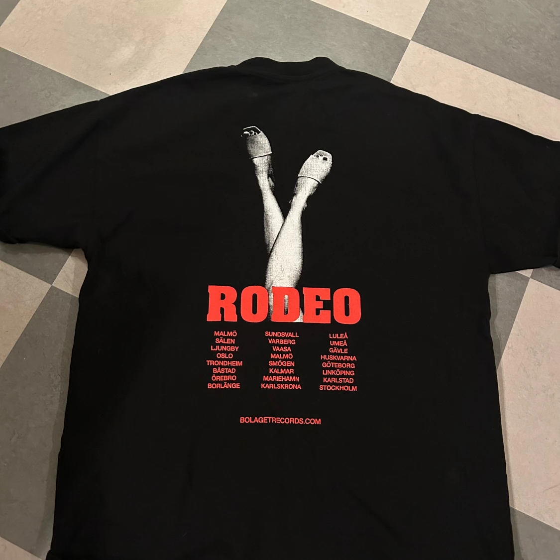 Svart t-shirt med stor röd RODEO-tryck på ryggen. Endast använd 1 gång, mycket fint skick. Pris kan absolut diskuteras vid snabb affär 🥰