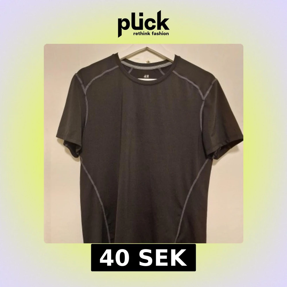 Säljer en svart sport t-shirt från H&M med grå sömmar. Materialet är lätt och andas bra, vilket gör den idealisk för intensiva aktiviteter.