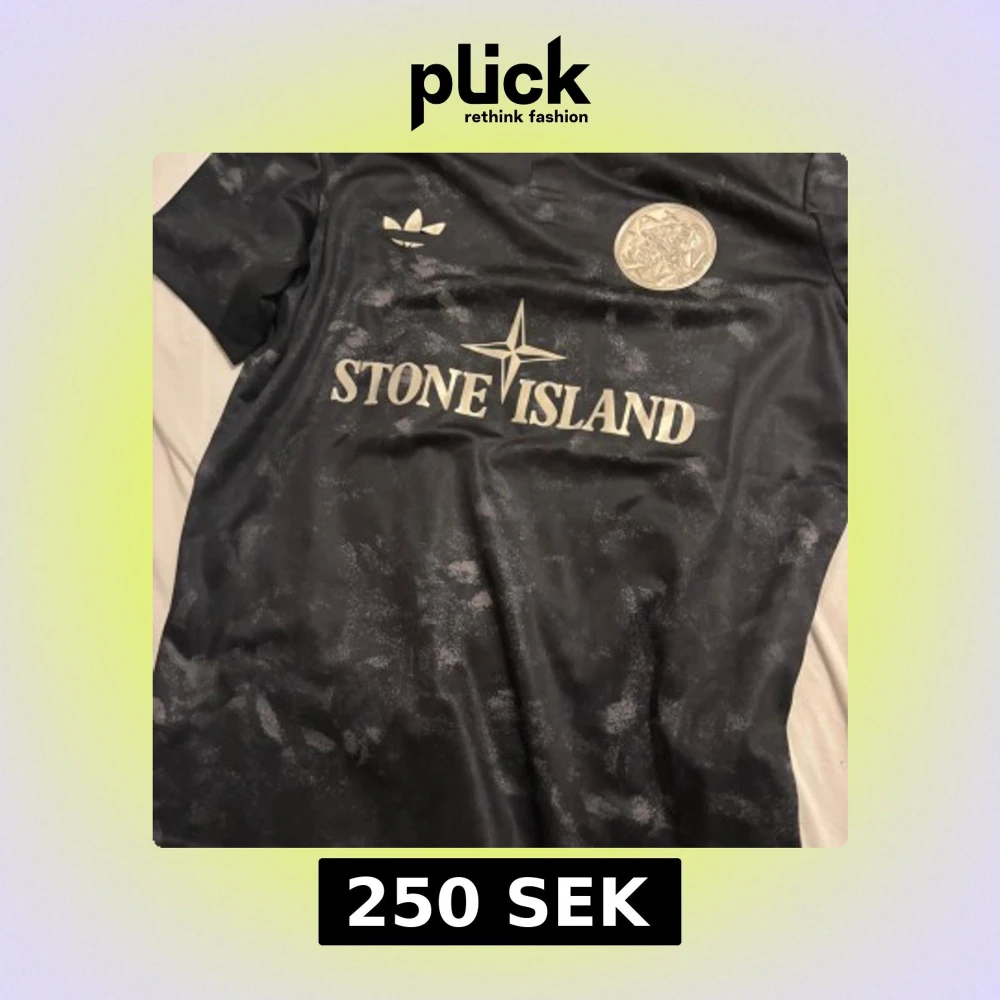 Snygg svart fotbollströja från Stone Island och Adidas med diskret mönster och vit logga på bröstet. Tröjan har korta ärmar, krage och är gjord i ett lätt, sportigt material som andas. Perfekt för dig som gillar streetwear och fotboll.