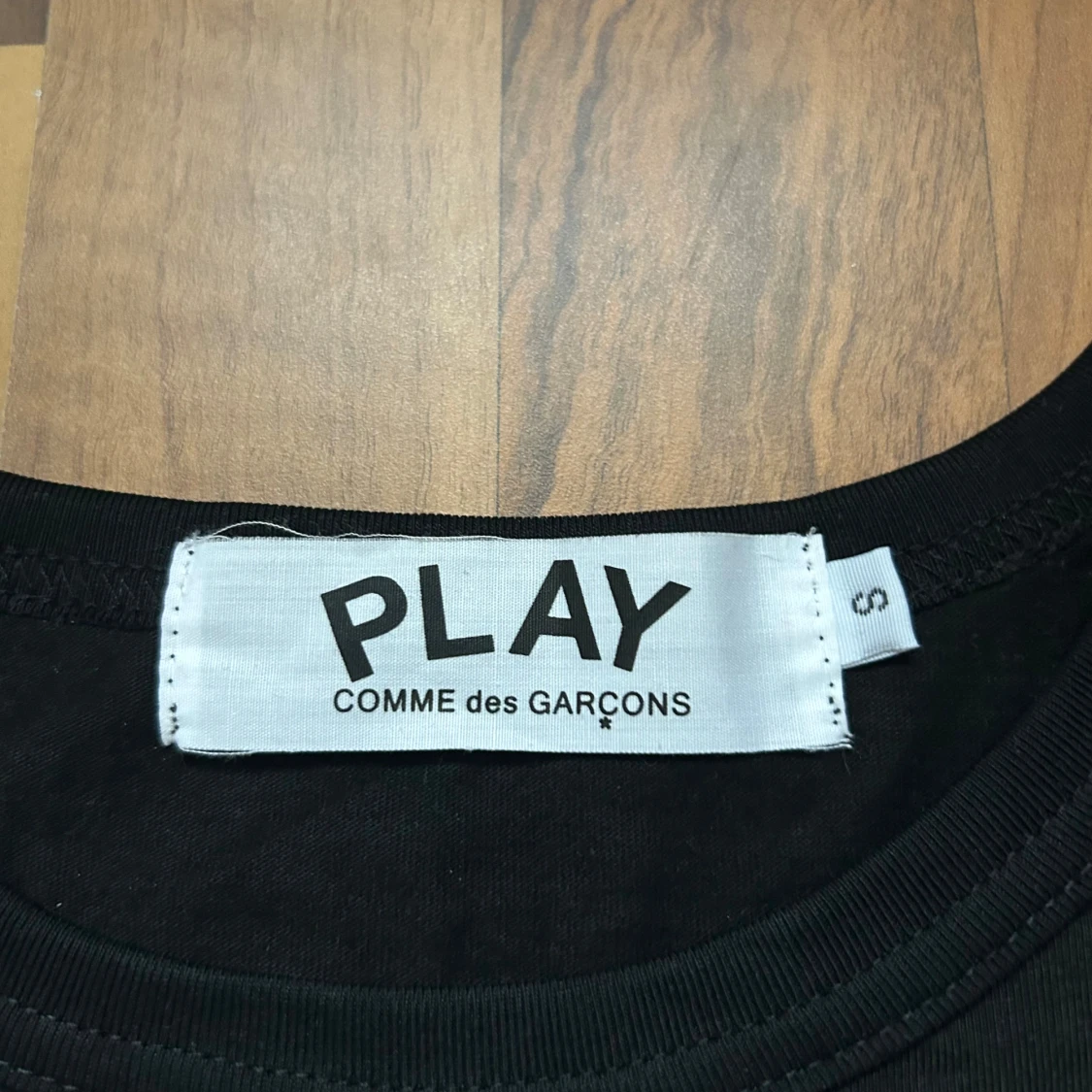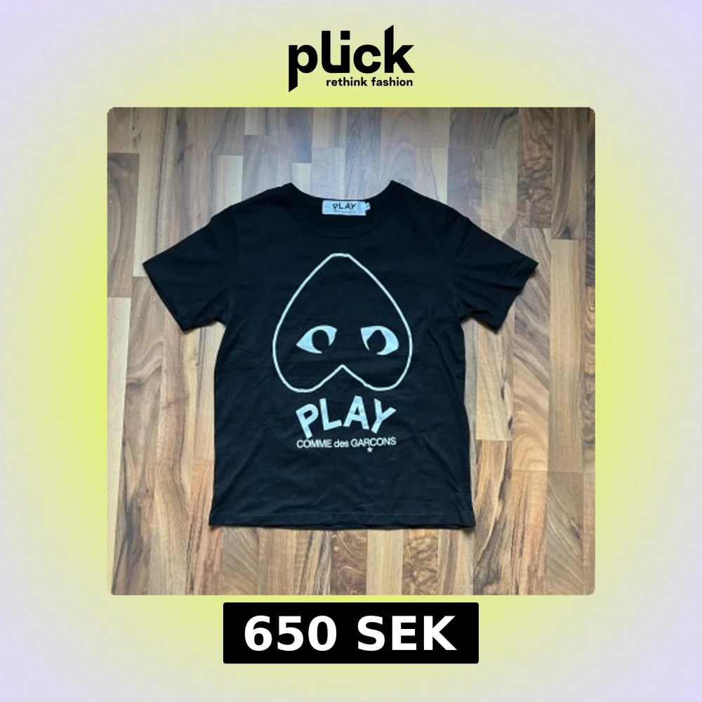 Svart t-shirt från Comme des Garçons Play med ikoniskt hjärta med ögon tryckt på bröstet och stor PLAY-logga under. Slimfit passform och rund halsringning. Perfekt för dig som gillar streetwear/laidback stil och vill sticka ut med en stilren design.