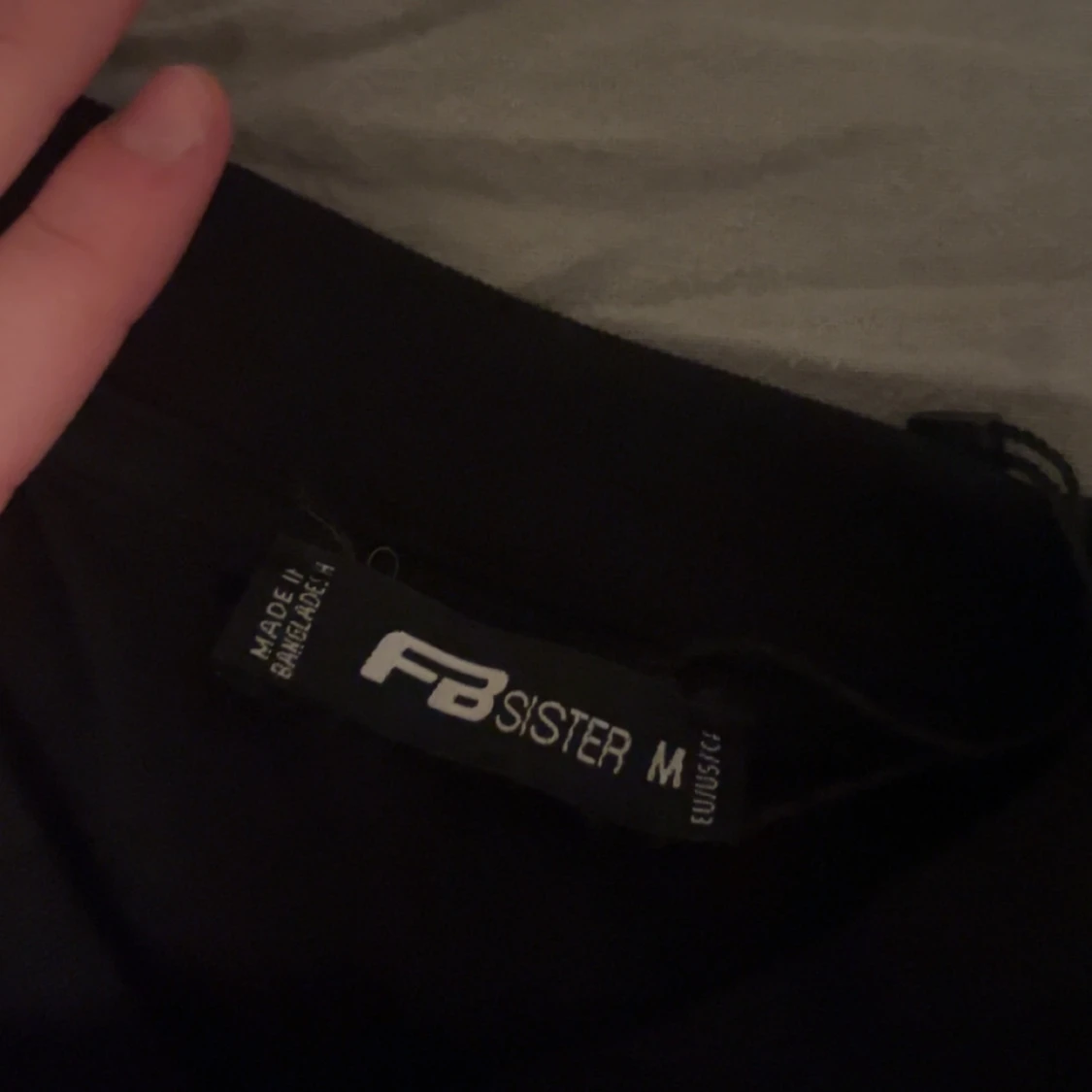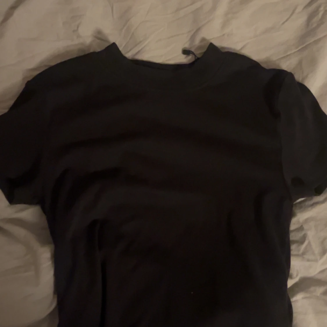 Säljer en klassisk svart t-shirt i storlek M. Perfekt basplagg med korta ärmar och rund hals. Passar till alla tillfällen och är lätt att matcha med andra kläder.