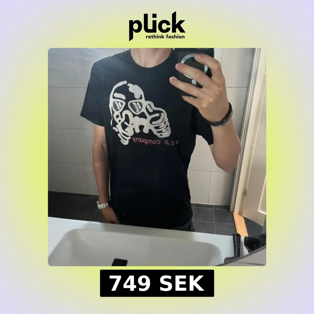 Svart t-shirt från C.P. Company med ett stort grafiskt tryck i vitt och rött framtill. Klassisk passform med rund hals och korta ärmar. Tillverkad i mjuk bomull som känns skön mot huden. Perfekt för dig som gillar streetwear och vill sticka ut lite extra.