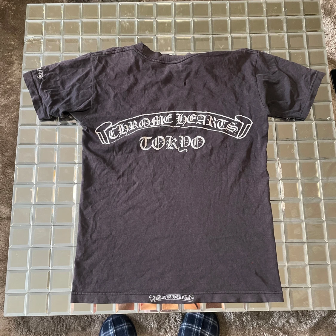Snygg svart t-shirt från Chrome Hearts med tryck på bröstet och ryggen. Tyvärr ganska dåligt skick med lite hål här och där och urtvättad. Från Tokyo butiken