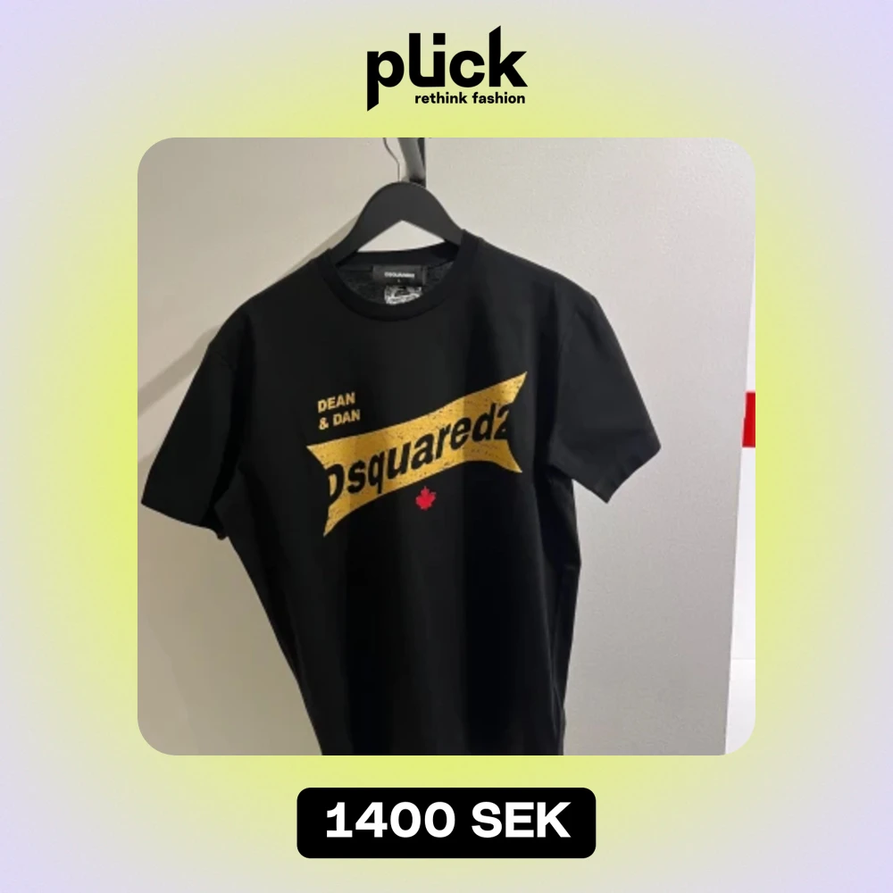 Säljer en HELT NY svart t-shirt från Dsquared2 med ett coolt guldtryck på framsidan. T-shirten har korta ärmar och är perfekt för en avslappnad stil. Den är i nyskick och redo att bäras till både vardag och fest!
