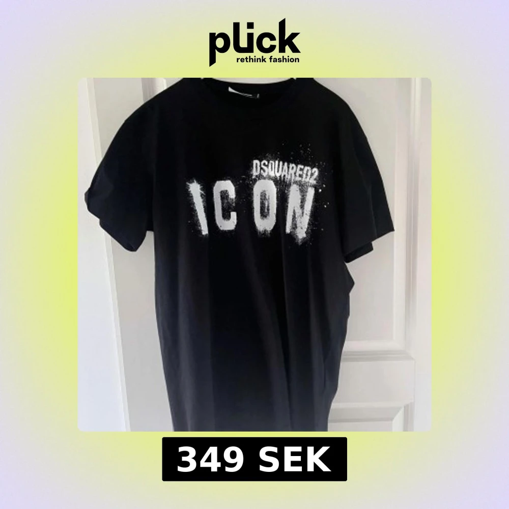 Svart t-shirt från Dsquared2 med stort vitt tryck på bröstet där det står 'ICON'. Klassisk rund hals och korta ärmar. Perfekt för dig som gillar streetwear och vill sticka ut med en ikonisk look.