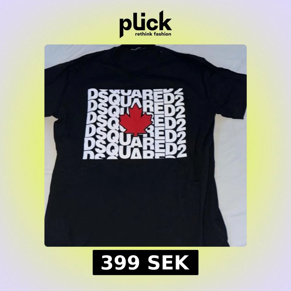 Snygg svart t-shirt från Dsquared2 med ett stort tryck av märkesnamnet och en röd lönnlöv i mitten. Perfekt för en casual look med en touch av stil. Passar bra till jeans eller shorts. Säljs inte längre på nätet och nypris 1400kr 100%Äkta‼️