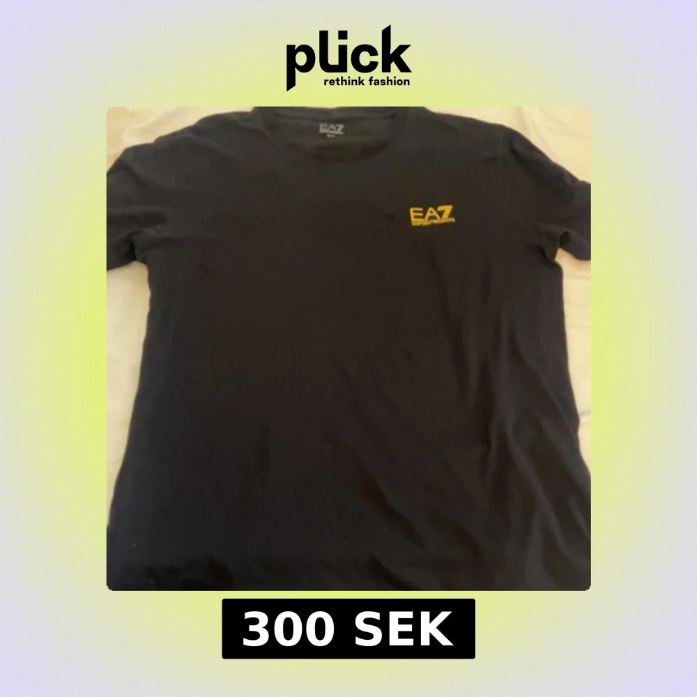 Säljer en stilren svart t-shirt från Emporio Armani med gul logga på bröstet. Perfekt för en casual look. T-shirten har en normal passform och är kortärmad.