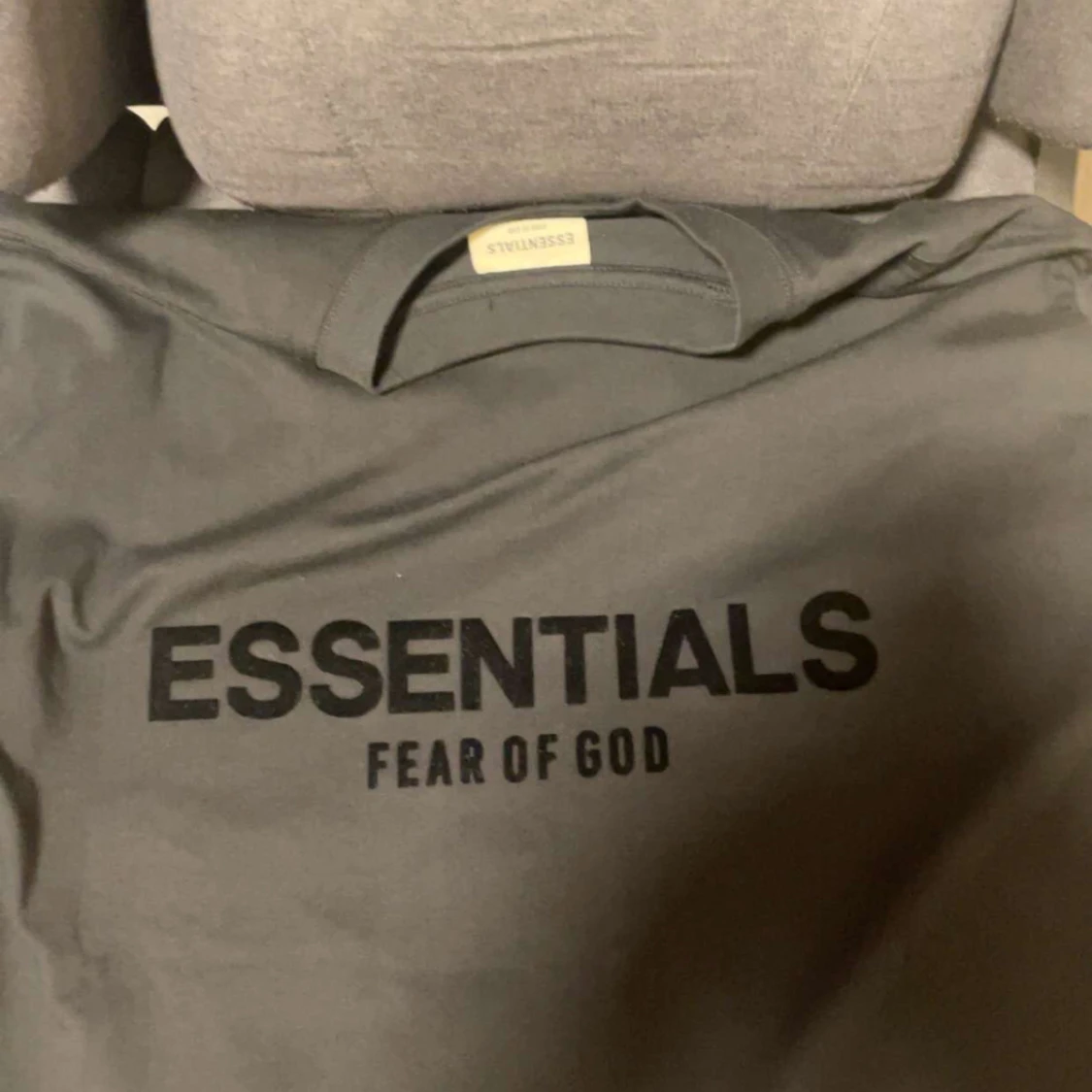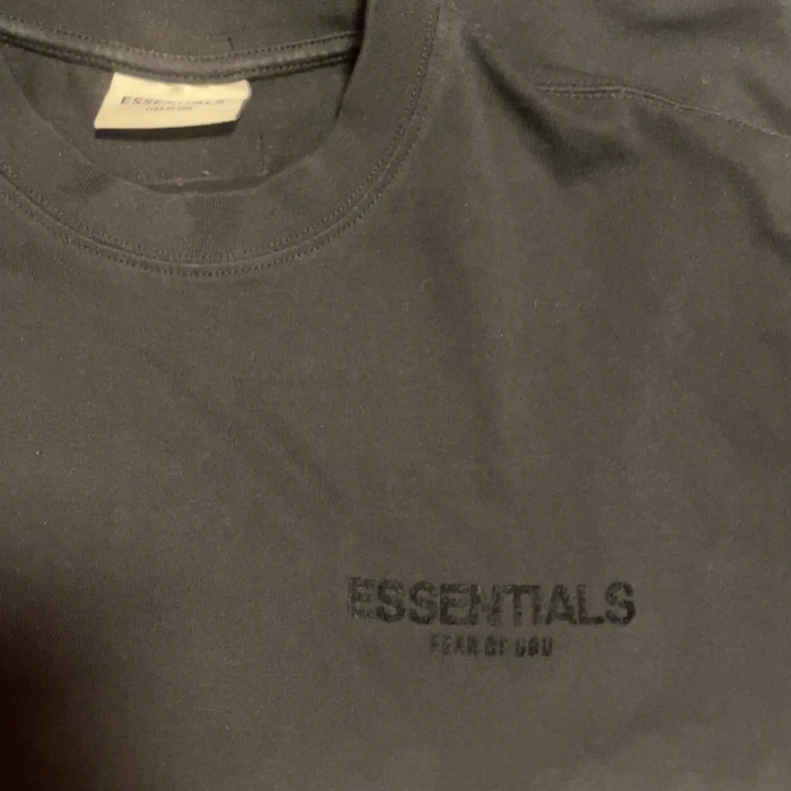 Snygg svart t-shirt från Fear of God Essentials med tryck på bröstet. Perfekt för en stilren och avslappnad look.