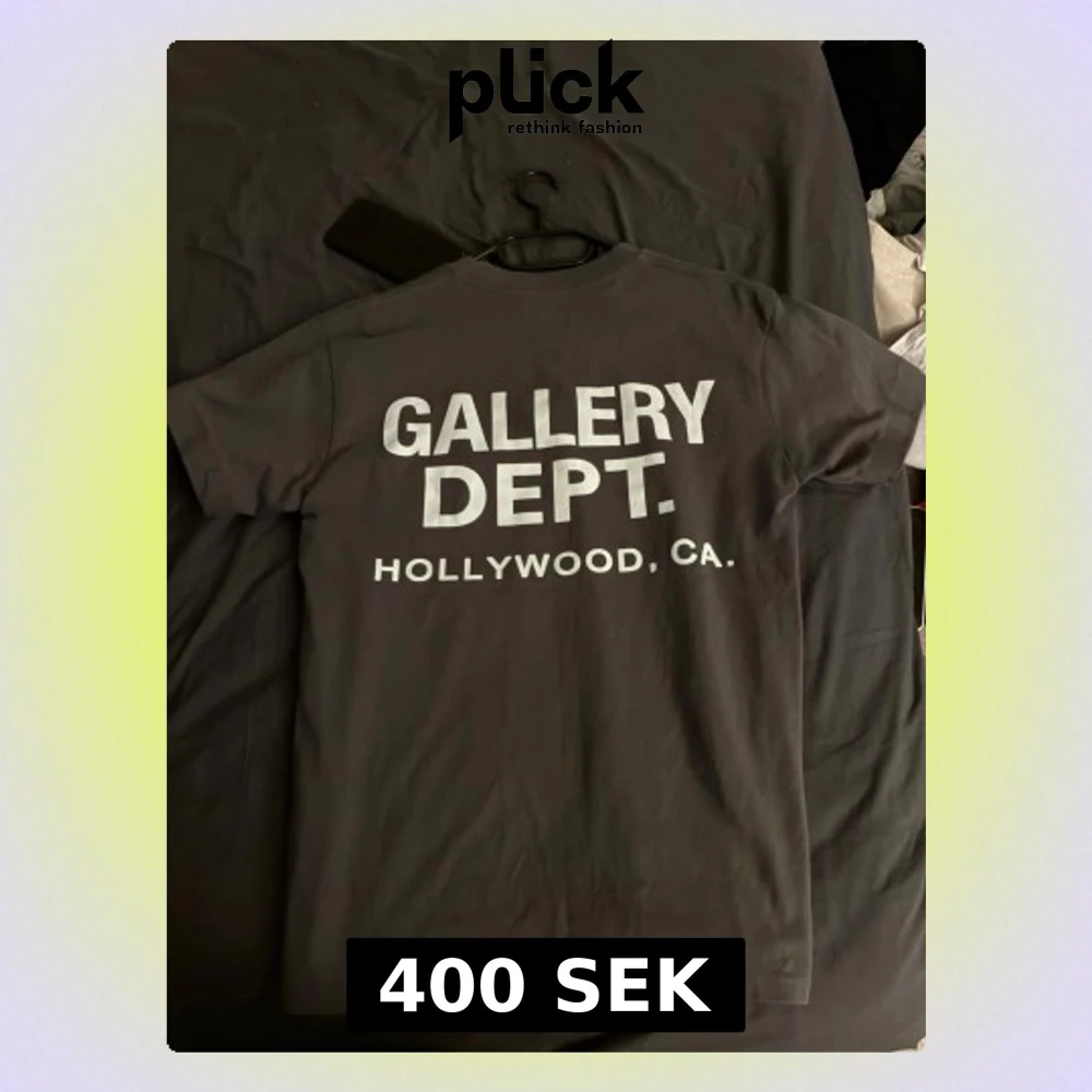 Svart t-shirt från Gallery Dept. med vit tryckt text både fram och bak. Klassisk rund hals och korta ärmar. Materialet är mjuk bomull och passformen är normal. Snyggt och stilrent LA-vibe med 'HOLLYWOOD, CA.' på ryggen.