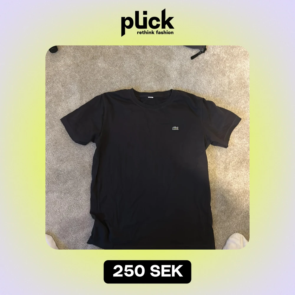 Säljer en klassisk svart t-shirt från Lacoste i bomull. Den har en normal passform och korta ärmar, perfekt för vardagsbruk. Den ikoniska krokodilloggan sitter på bröstet. Passar både till jeans och shorts!