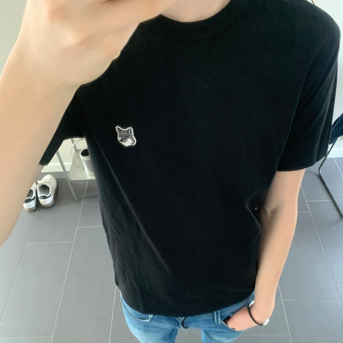 Snygg svart t-shirt från Maison Kitsuné. Helt ny från NK Göteborg. Nypris 1000kr. Gjord med en liten broderad logga på bröstet. Perfekt för en stilren look. Kortärmad och tillverkad i mjukt material för extra komfort.