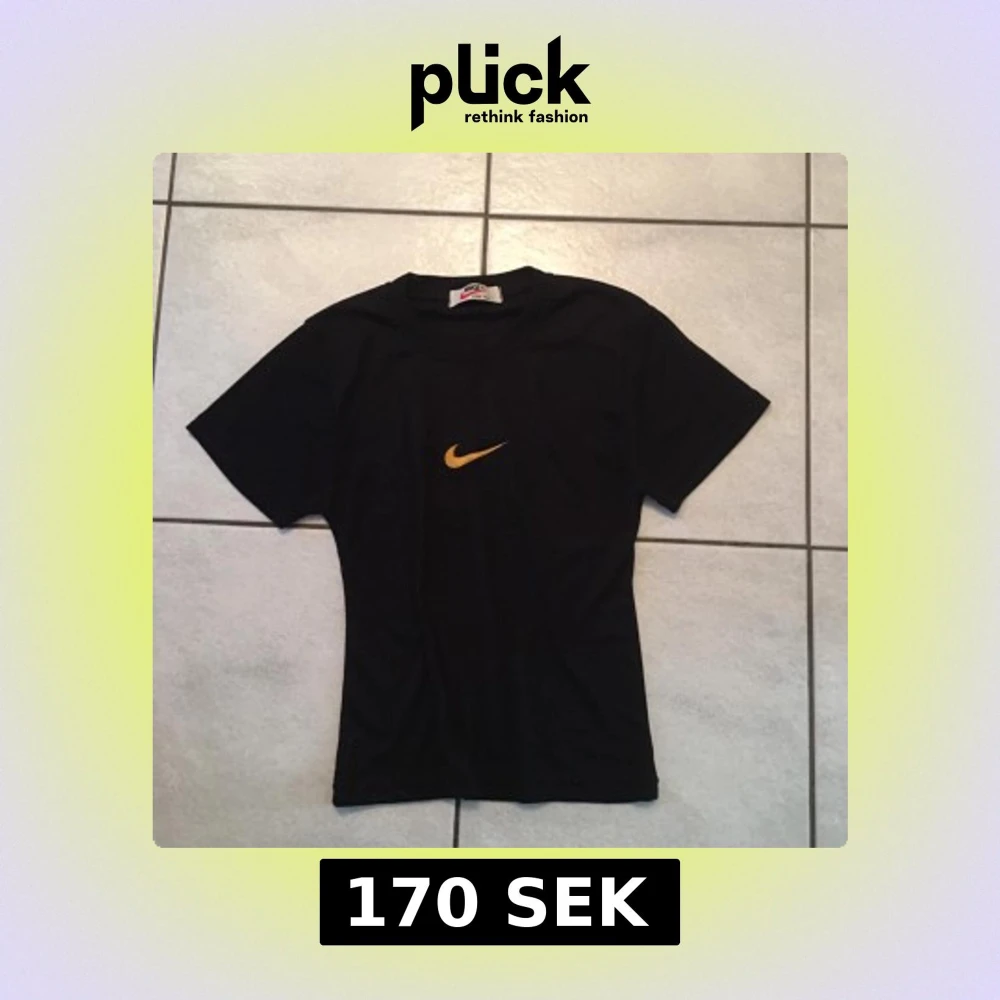 Snygg svart t-shirt från Nike med det klassiska gula swoosh-loggan på bröstet. Perfekt för en sportig look eller avslappnad stil. Kortärmad och tillverkad i mjukt material för extra komfort.