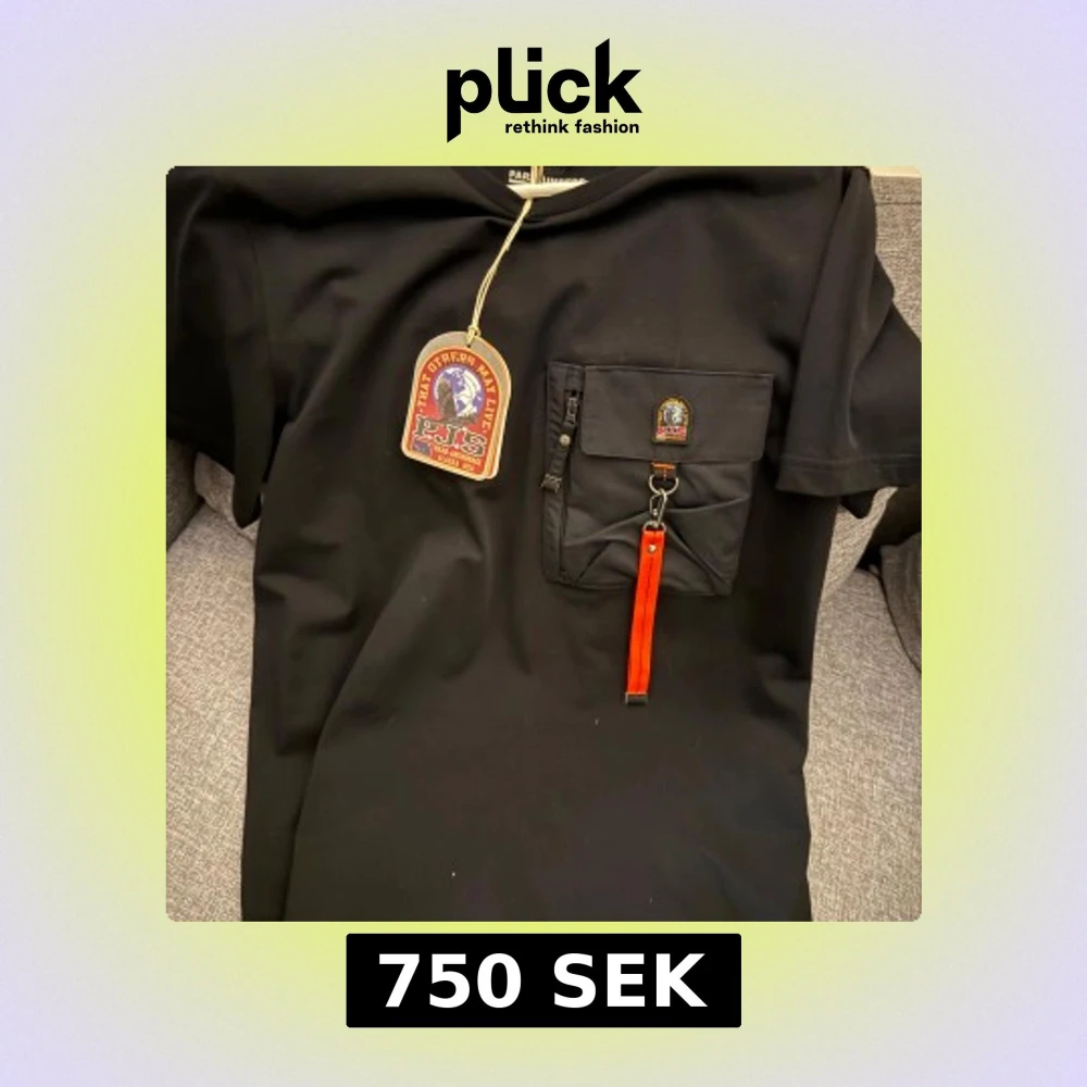 Svart t-shirt från Parajumpers med cool bröstficka som har dragkedja, knapp och en orange detalj. T-shirten har korta ärmar och en snygg logga på fickan. Perfekt för dig som gillar streetwear och vill sticka ut lite extra.