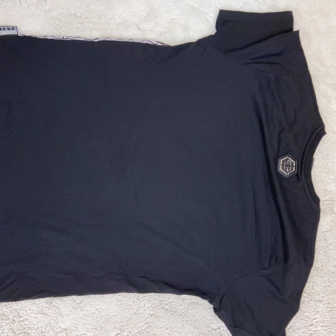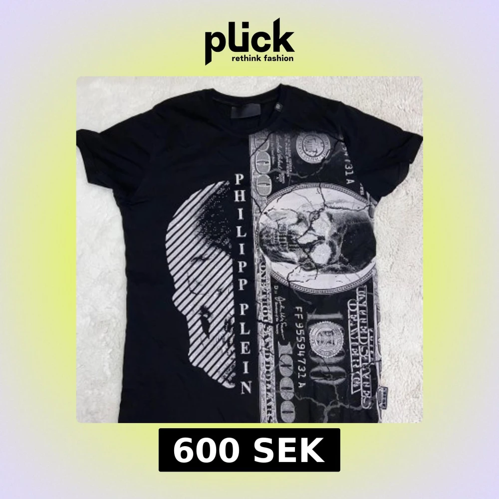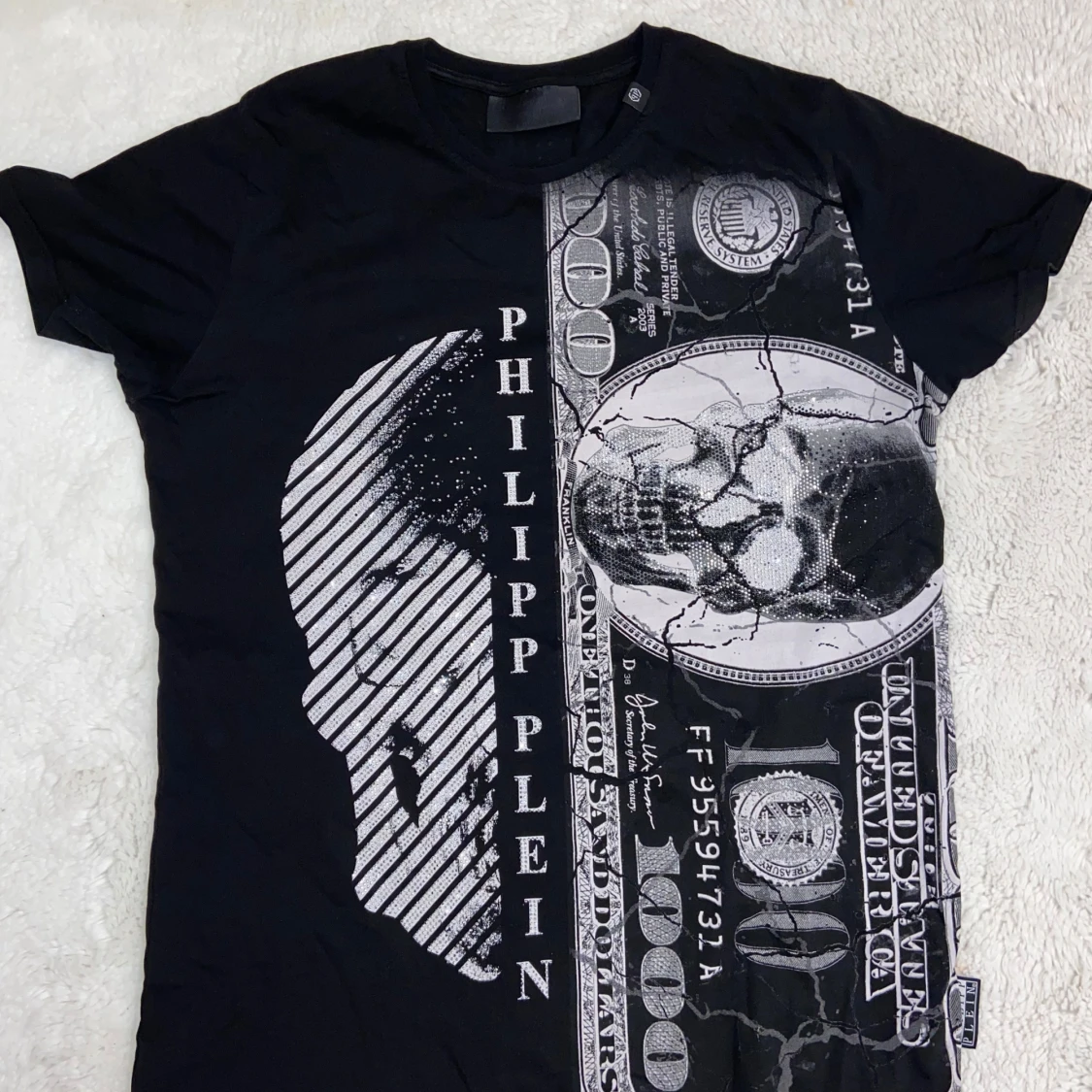 Cool svart t-shirt från Philipp Plein med ett unikt tryck av en dödskalle och sedlar på framsidan. Perfekt för dig som vill sticka ut med en edgy stil. T-shirten har korta ärmar och en normal passform.