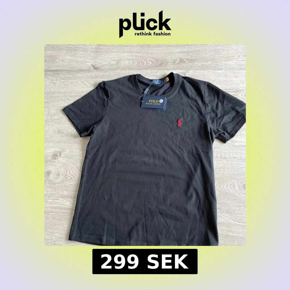 Säljer en klassisk svart t-shirt från Polo Ralph Lauren med röd broderad logga på bröstet. T-shirten har rund hals och korta ärmar, perfekt för en stilren och enkel look.