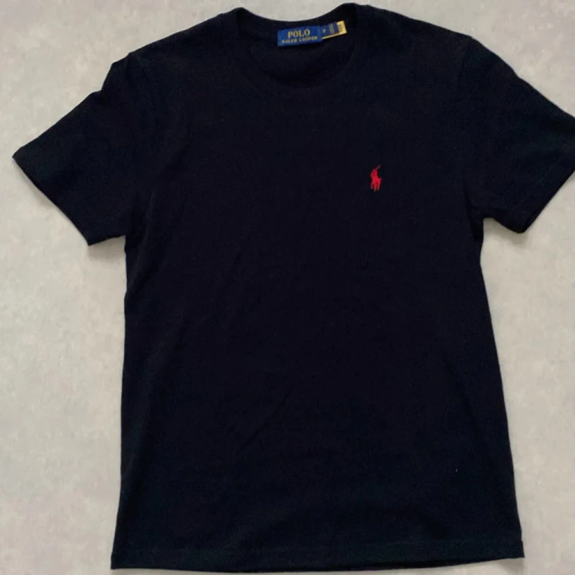 Mer som S. Svart t-shirt från Polo Ralph Lauren med klassisk röd broderad logga på bröstet. Modellen är kortärmad och har rund hals. Tillverkad i mjuk bomull som känns skön mot huden. Perfekt för dig som gillar stilrena och tidlösa plagg.