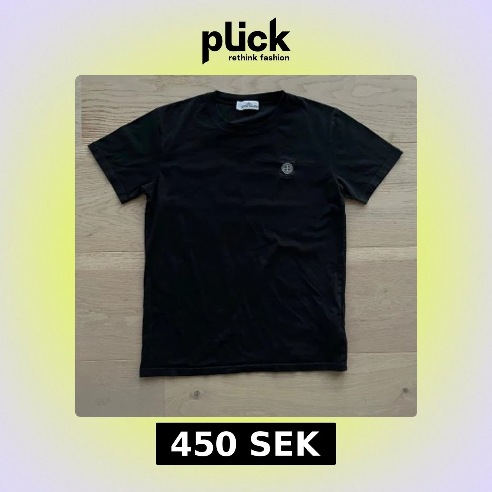 Säljer en snygg T-shirt från Stone Island i svart färg och logga på bröstet. T-shirten är i storlek M