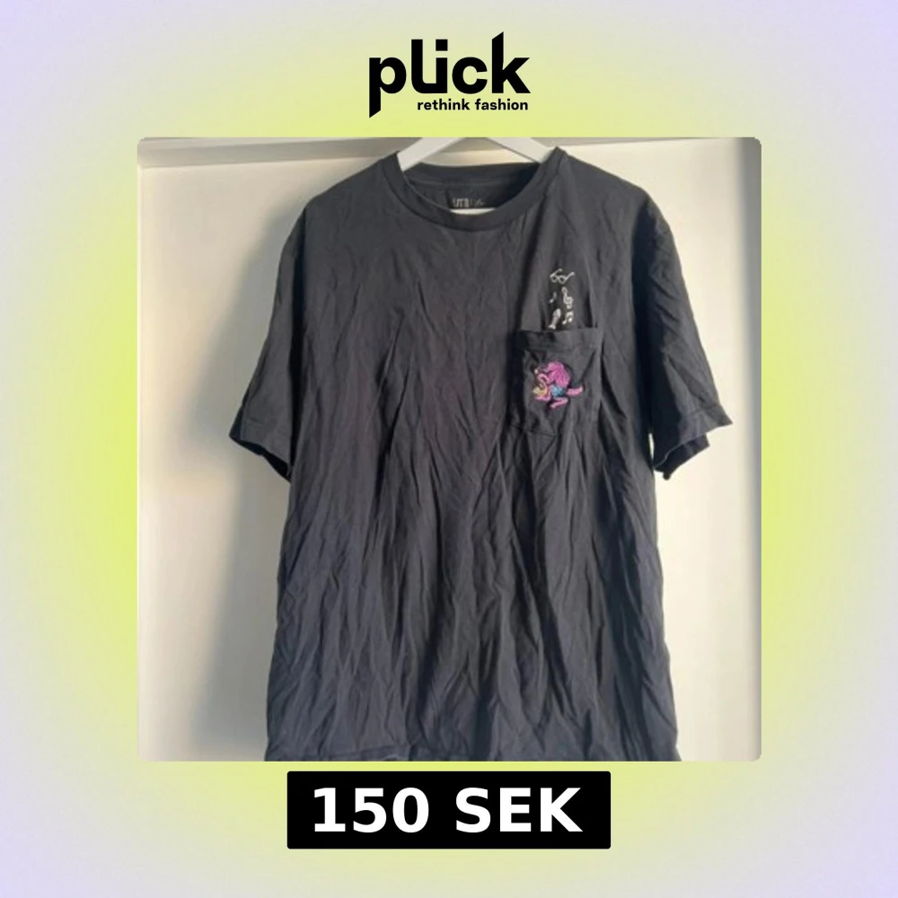 Svart t-shirt med coolt broderat motiv på bröstfickan och vita broderade detaljer på ärmen. Skön passform och tillverkad i 100% mjuk bomull. Perfekt för dig som gillar unika prints och streetstyle. Limited edition deadstock.