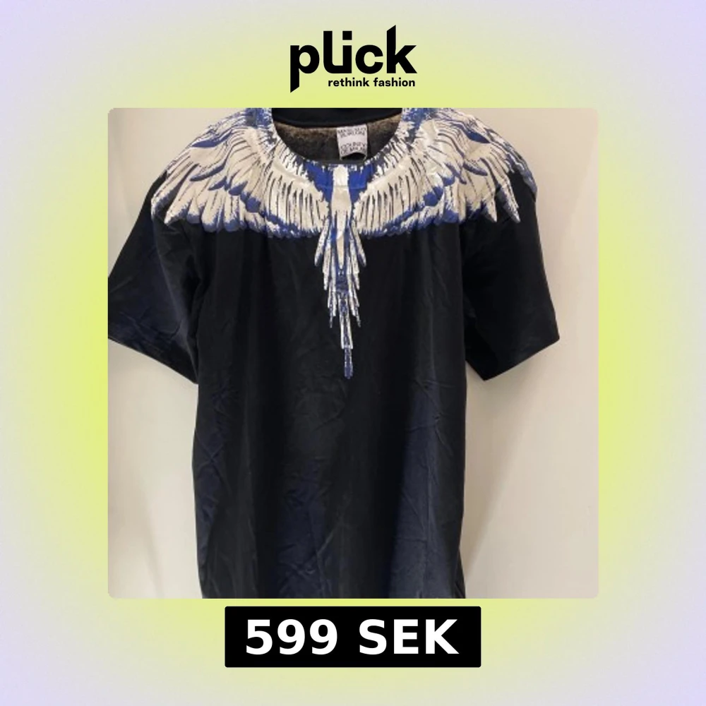 Svart t-shirt med blått och vitt fjädertryck