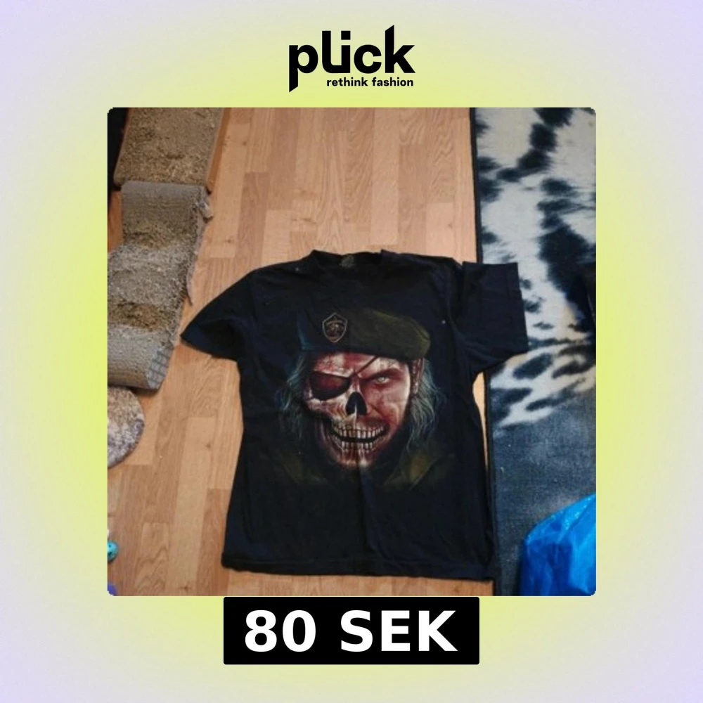Cool svart t-shirt från Rock Eagle med stort tryck av en dödskalle med ögonlapp och basker på framsidan. T-shirten är i 100% bomull och har normal passform med korta ärmar. Perfekt för dig som gillar unika och tuffa motiv.