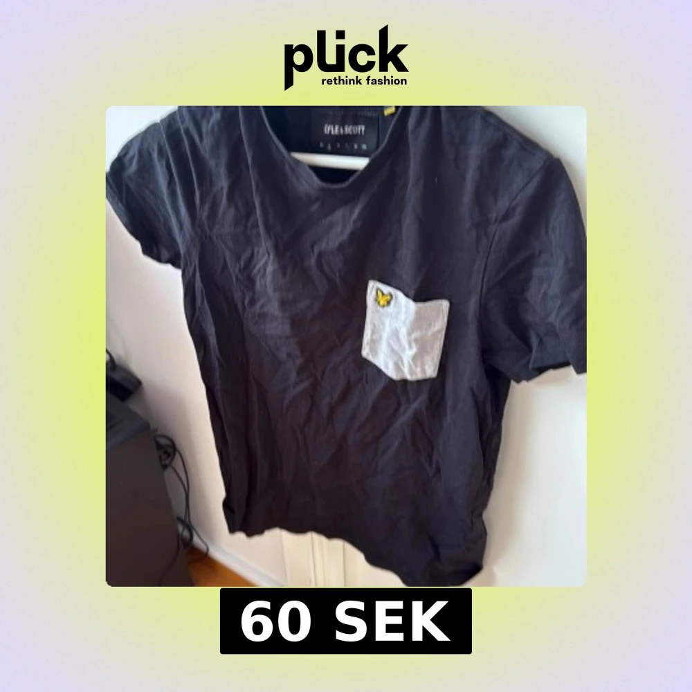 Snygg svart t-shirt från Lyle & Scott med en vit bröstficka och en gul broderad fjäril. Perfekt för en avslappnad stil. Kortärmad och tillverkad i mjukt material.
