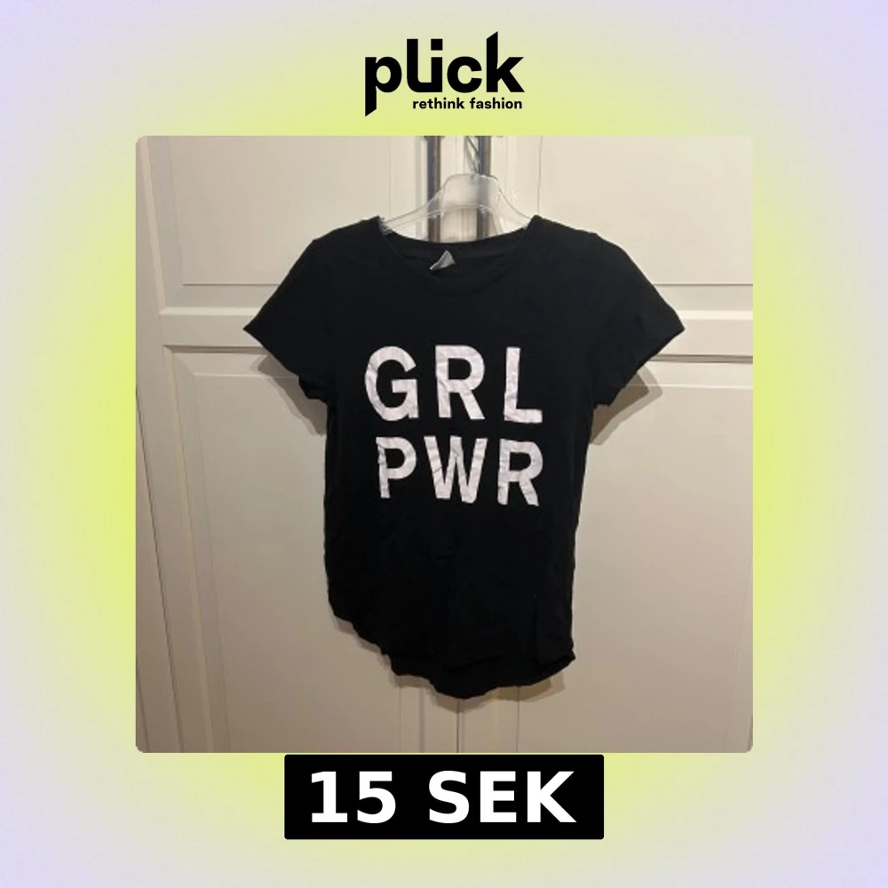 Cool svart t-shirt från Gina Tricot med stort vitt GRL PWR-tryck på framsidan. Klassisk rund halsringning och korta ärmar. I strl S
