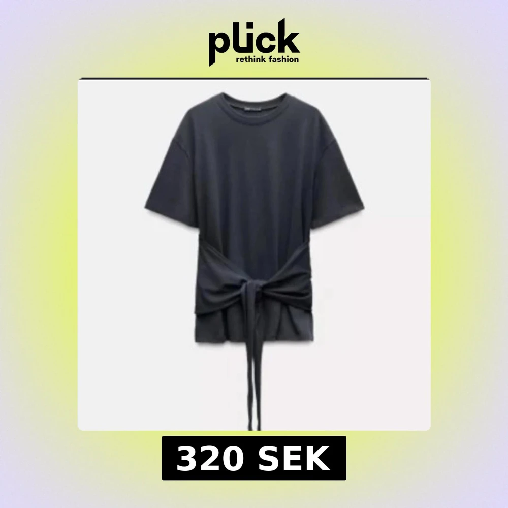 Cool svart t-shirt från Zara med korta ärmar och rund hals. Den har en unik knyt-detalj i midjan som ger en snygg siluett. Materialet känns mjukt och skönt, perfekt för dig som gillar stilrena plagg med en twist.