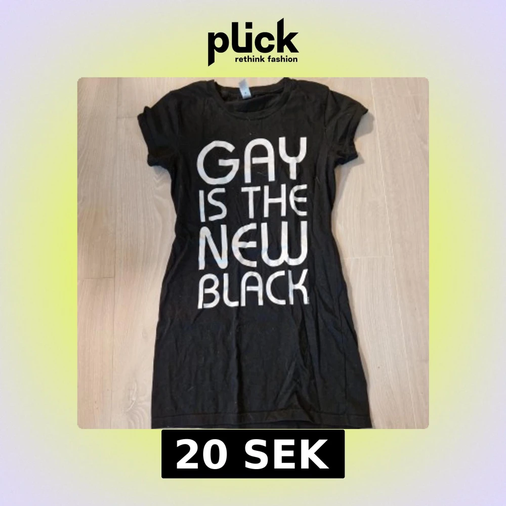 Snygg svart t-shirt med texten 'GAY IS THE NEW BLACK' i vitt. Perfekt för att uttrycka stil och budskap. Kortärmad och i normal passform. Skulle säga att den passar xs