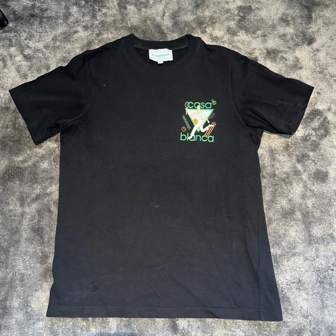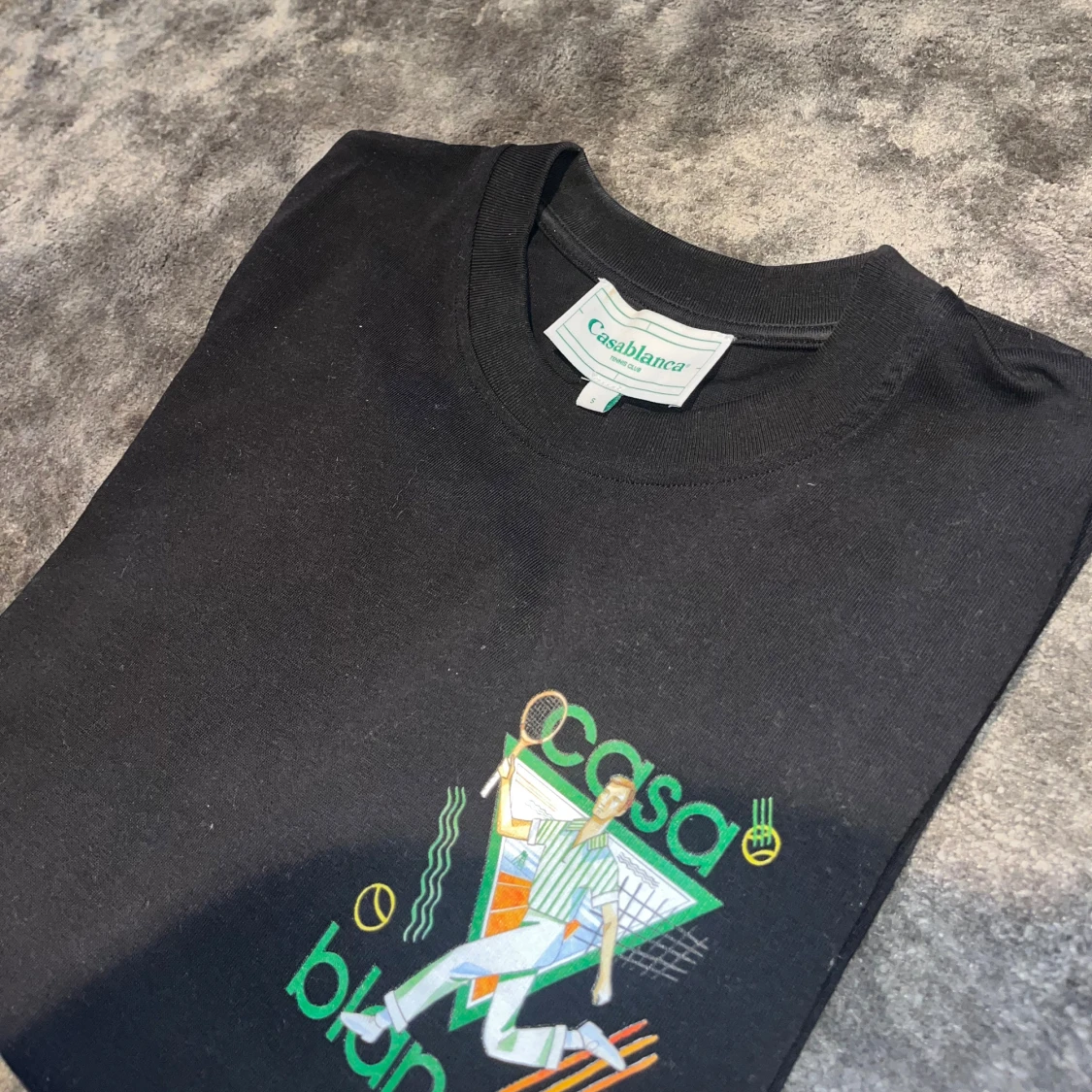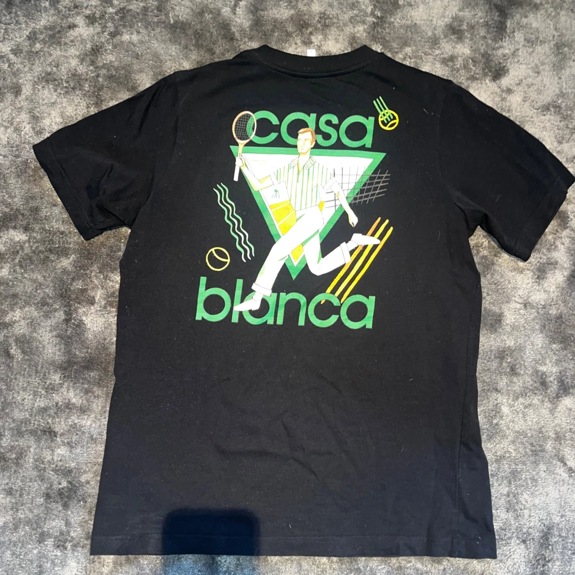 Casablanca t-shirt i svart med färgglatt tennisinspirerat tryck på bröstet och ryggen. Trycket har gröna, gula och vita detaljer samt texten 'casa blanca'. Rund hals och klassisk passform, perfekt för dig som gillar sportiga och coola prints. Självklart äkta!!!