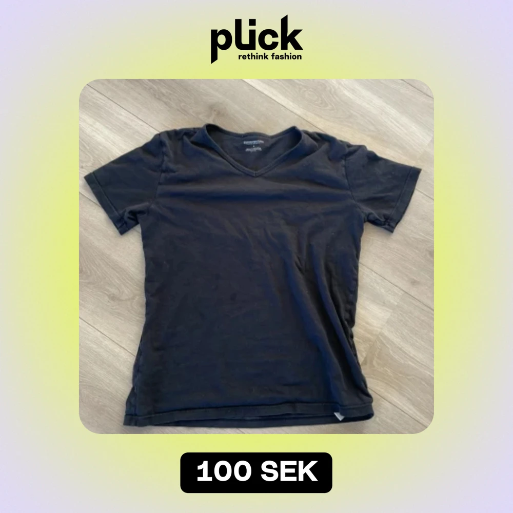 Svart t-shirt, lite urringad upp till (som man ser på första bilden)