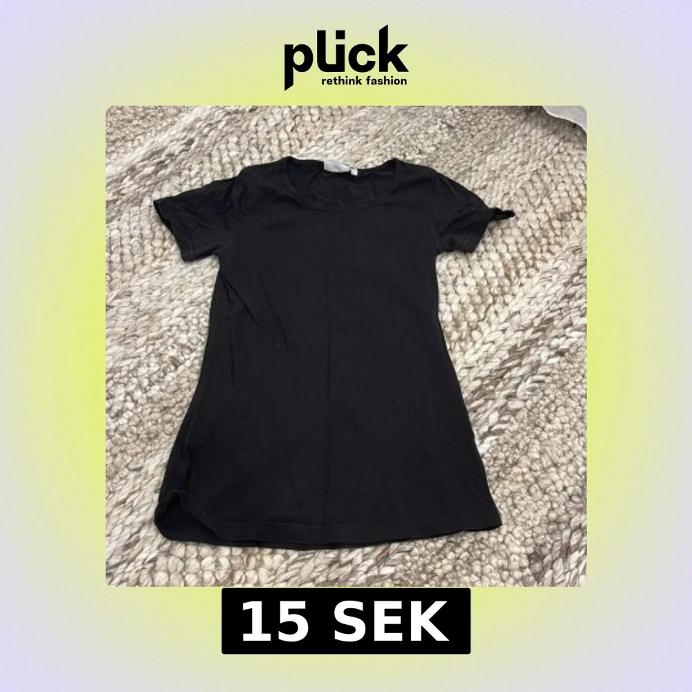Enkel svart t-shirt från Tribute i storlek S. Modellen är klassisk med rund halsringning och korta ärmar.