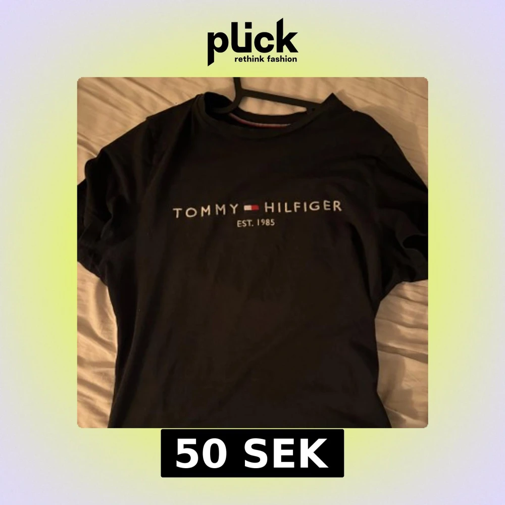 Svart t-shirt från Tommy Hilfiger med klassisk logga och texten 'EST. 1985' broderad på bröstet. Enkel och stilren design med rund hals och korta ärmar. Perfekt för en clean och avslappnad look.