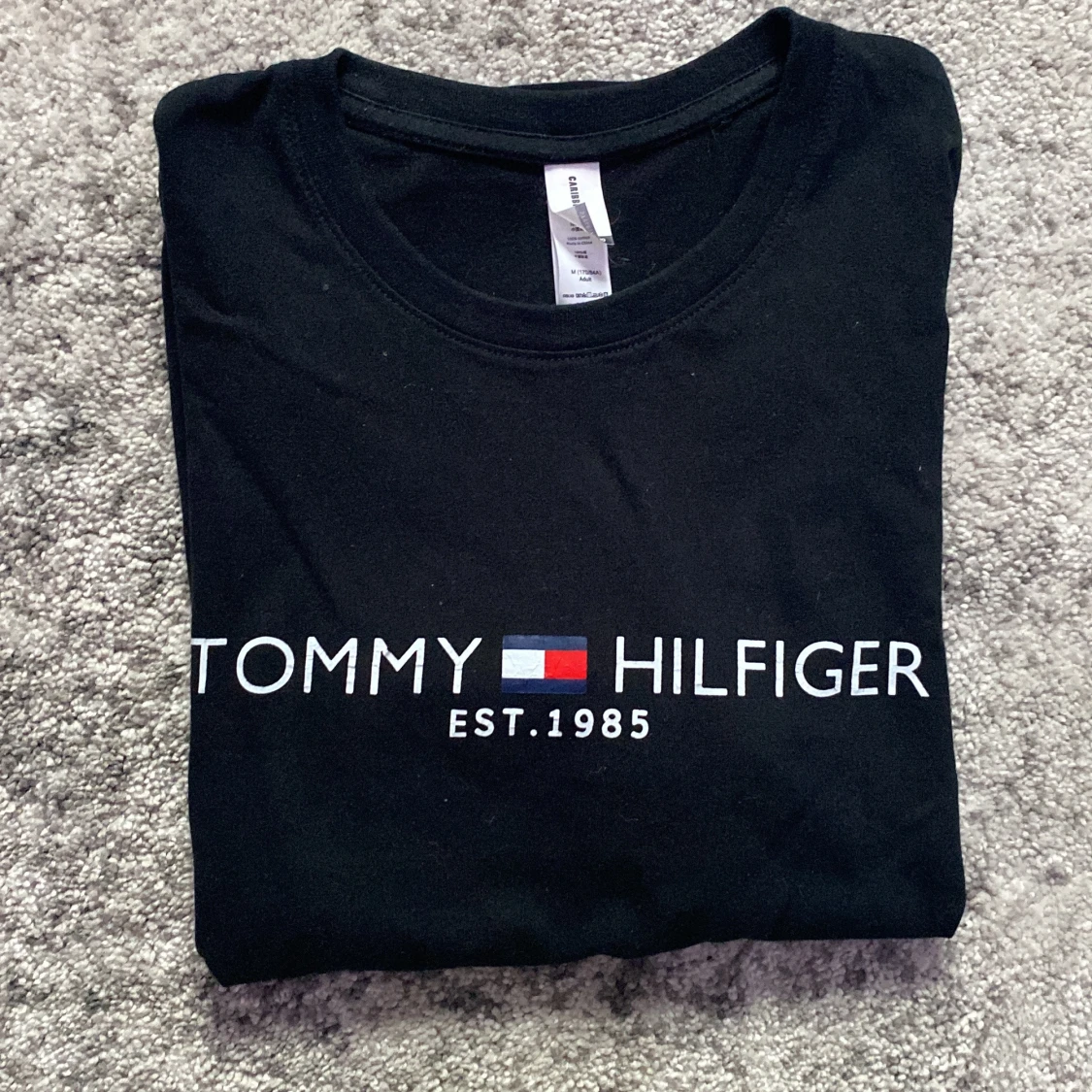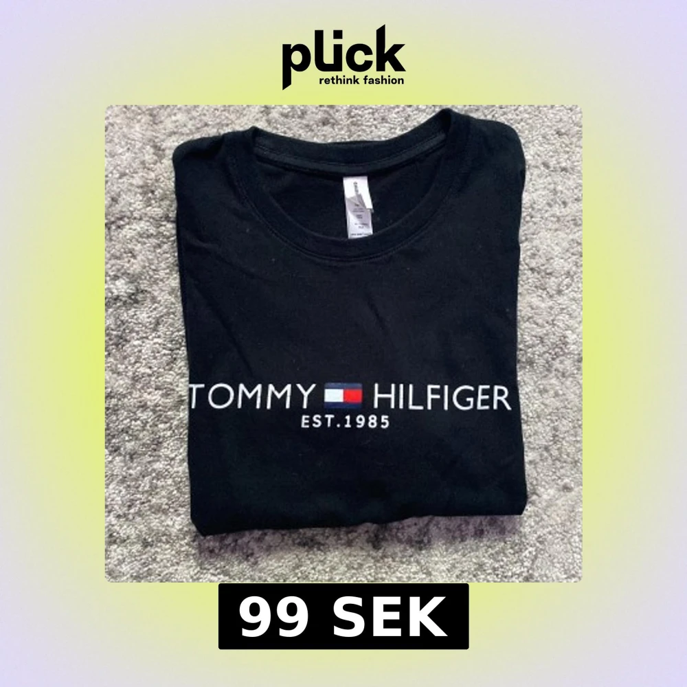 Svart t-shirt i bomull med klassiskt Tommy Hilfiger-tryck och logga framtill. Rund halsringning och normal passform. Perfekt för dig som gillar stilrena och ikoniska plagg med tydlig branding.