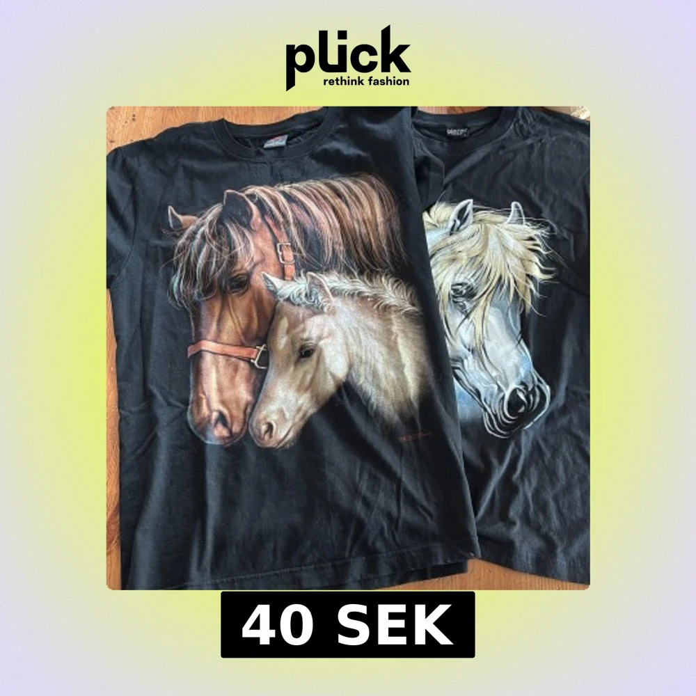 Två hästtröjor i storlek L på båda. Den tröjan med två hästar har samma tryck på baksidan fast gråvit, den andra tröjan har bara svart baksida.