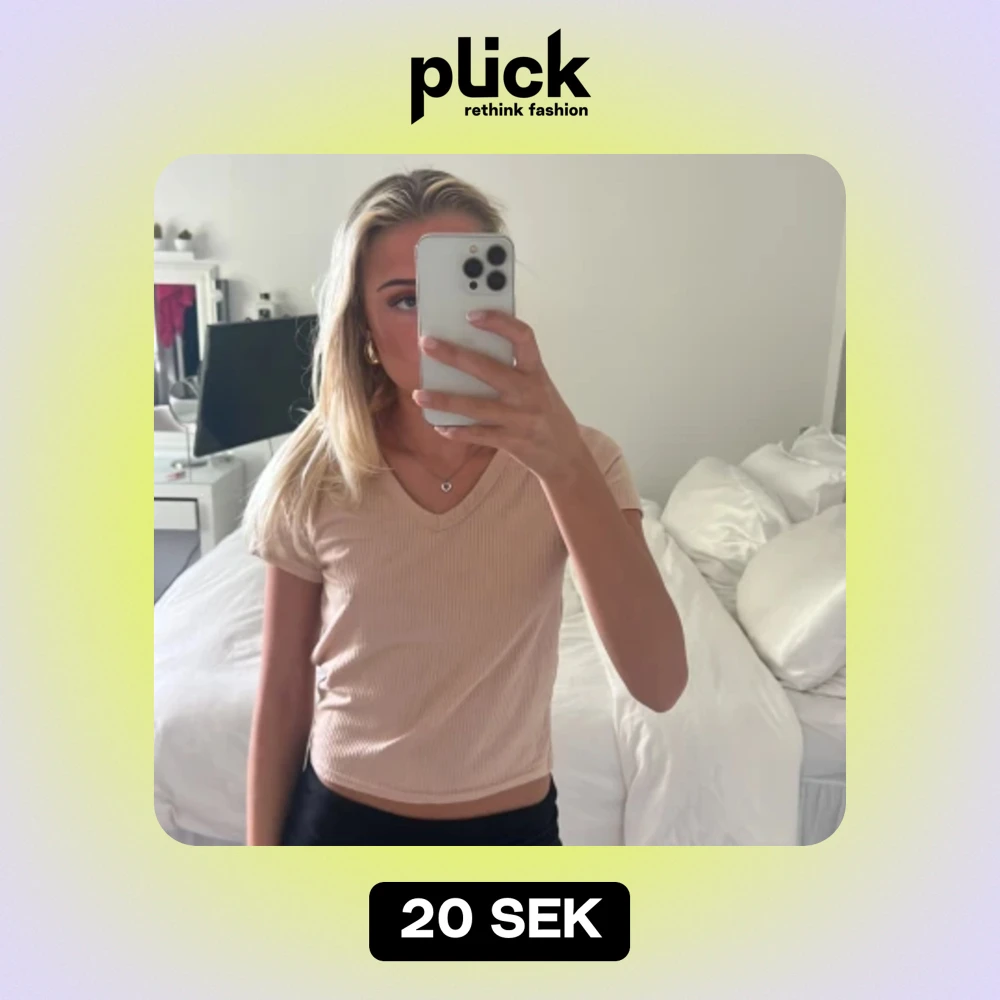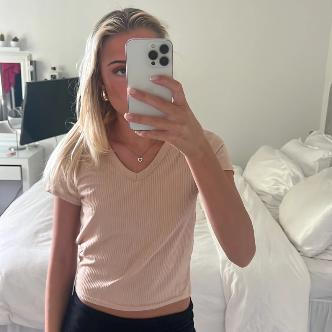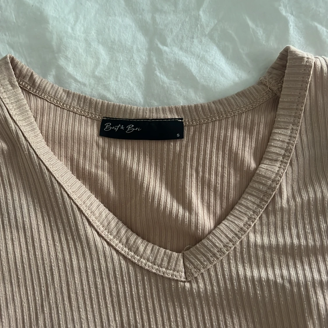 Ribbad, kort, v-ringad t-shirt i mjukt material. Använd 1 gång
