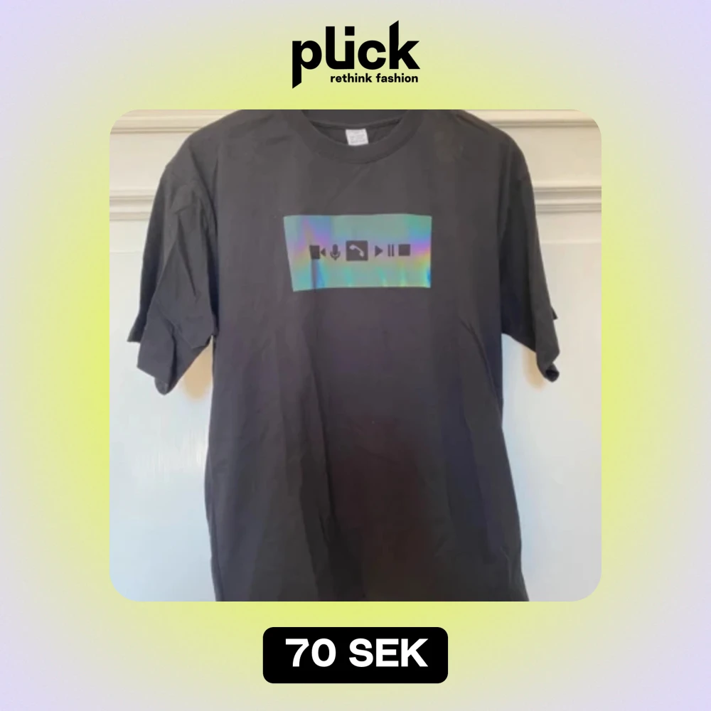 Säljer en svart t-shirt med tryck på. Tröjan är från Lindex och är i storlek 158/164. Den har aldrig kommit till användning.