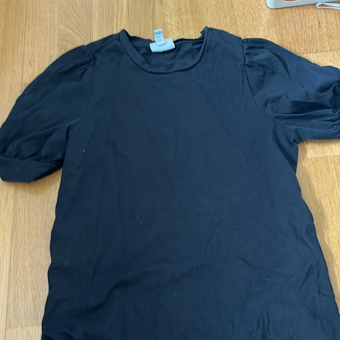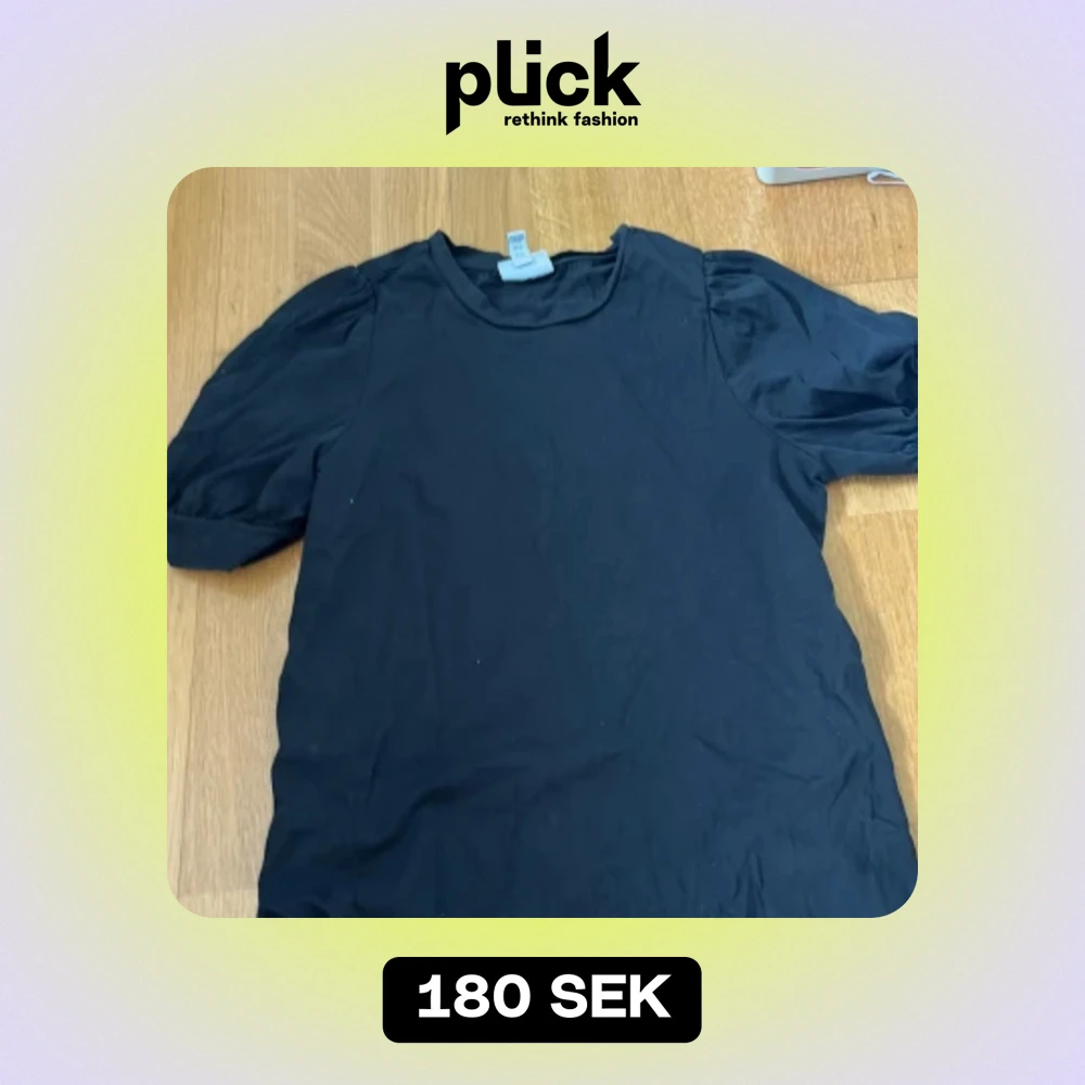 Svart T-shirt med puffiga armar ifrån Aware. Är s men passar nog M också. Säljer för den aldrig kommit till användning🫶🏼💕