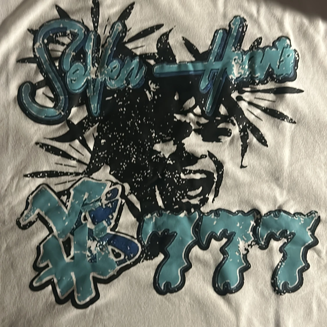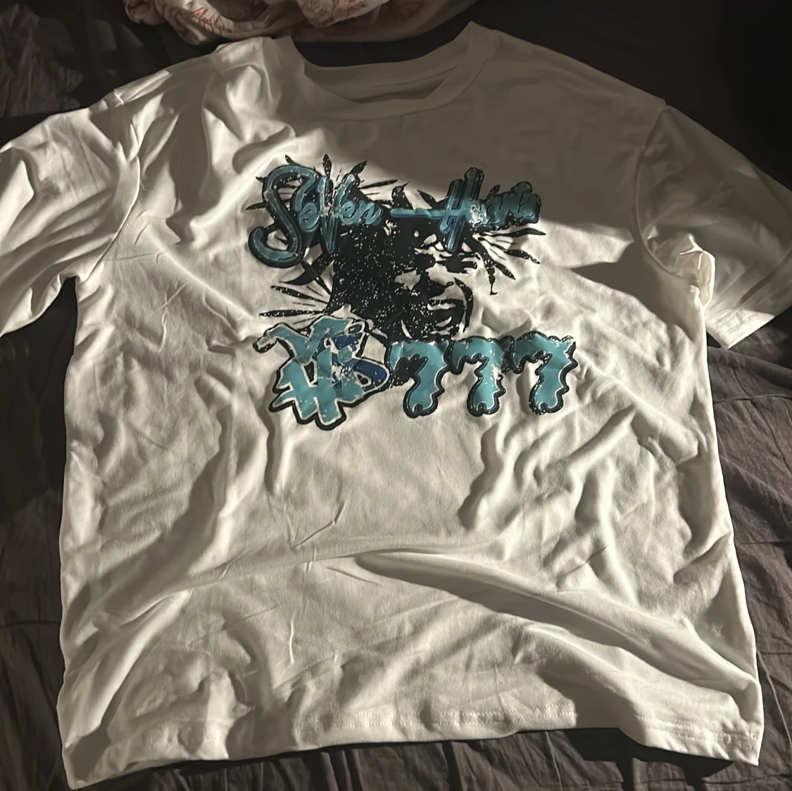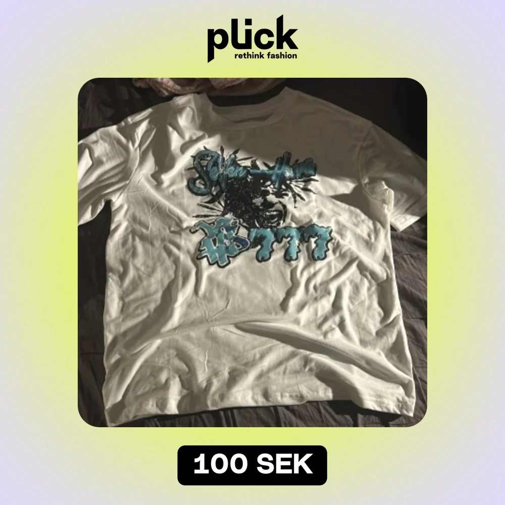 Vit T-shirt med cool bild tryck i färgen ljus blå🩵Den är oanvänd