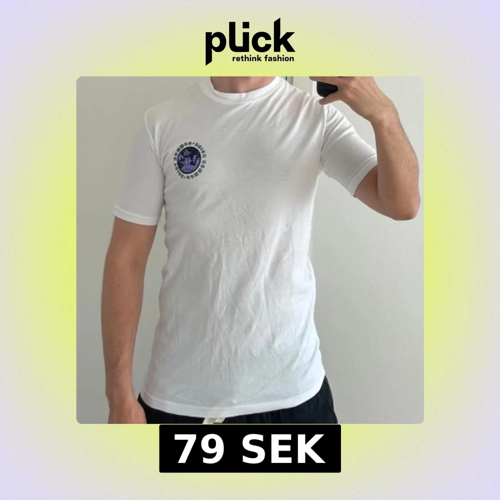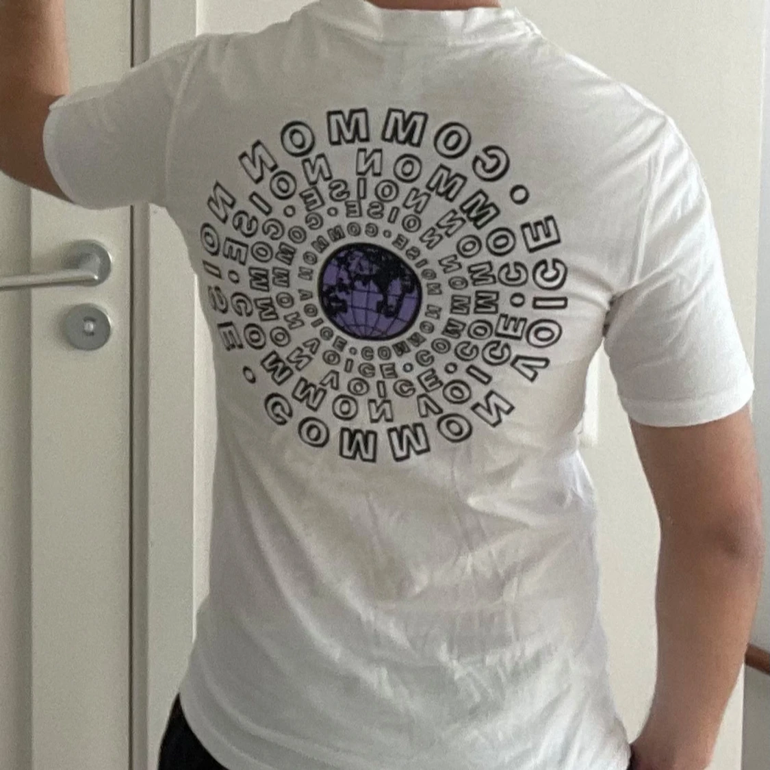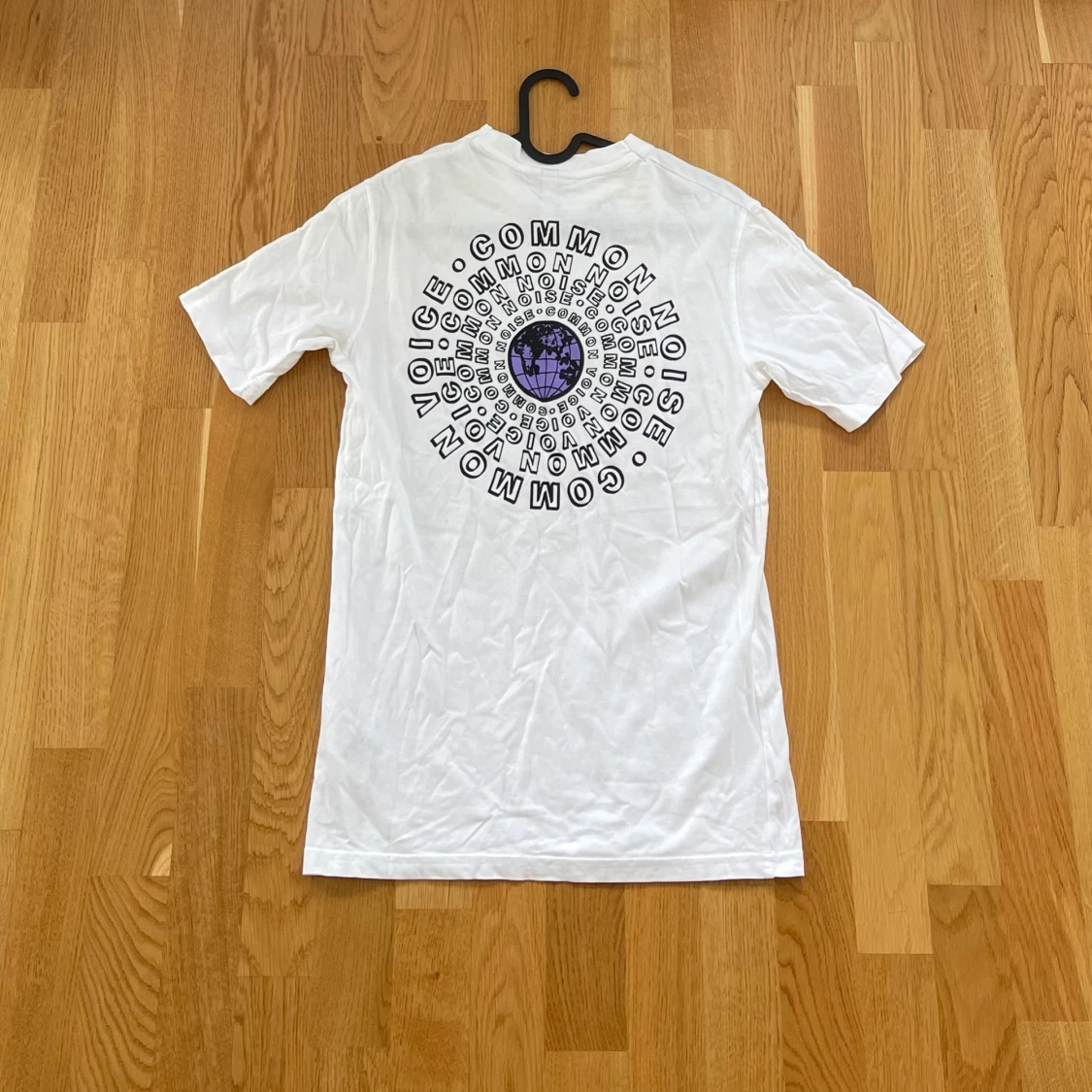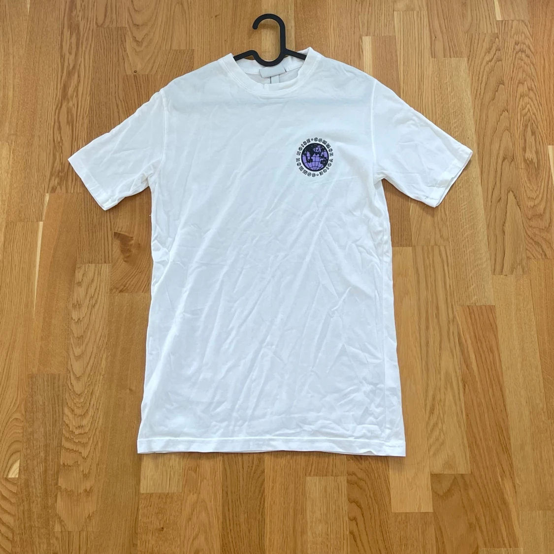 Vit t-shirt med tryck fram och bak. Storlek S.
