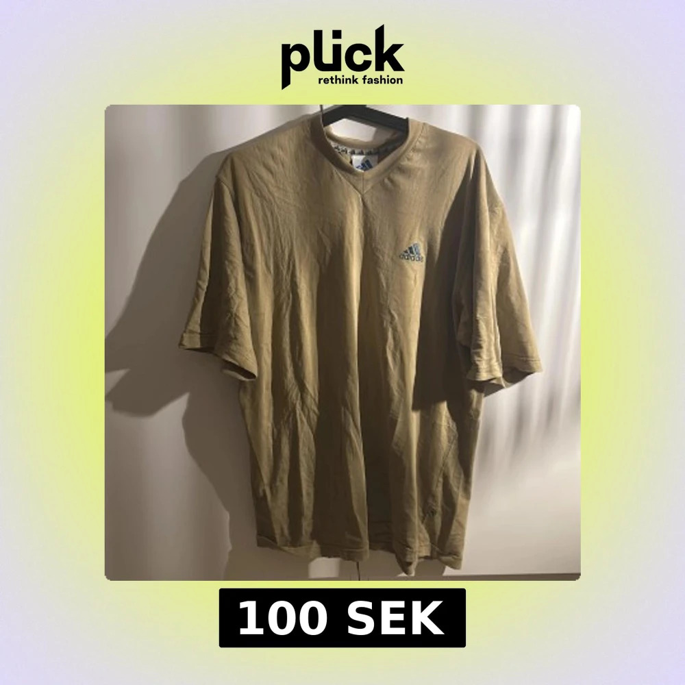 Snygg brun/beige t-shirt från Adidas med v ringning, däremot ganska lång krage. Tillverkad i mjuk bomull och bekväm. ‼️Adidas loggan inuti tröjan vid lappen håller på att släppa lite men inget som märks:)