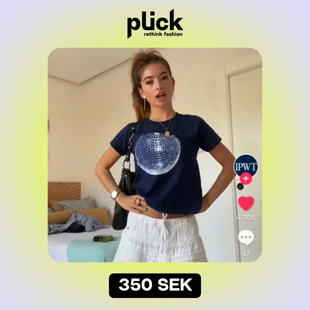 Jag säljer en jättesnygg navy blå baby tee, "STUDIO 54" från in print we trust i storlek S 🥰🫶Den är helt oanvänd. Det är bara att skriva om du undrar nånting annat, eller för fler bilder💗✨️