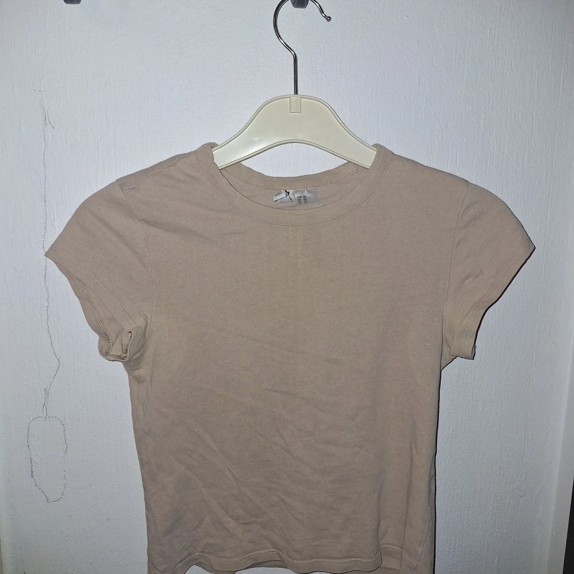En basic beige t-shirt från H&M Divided i storlek XS. Modellen är kortärmad med rund halsringning och har en enkel, clean look. Tillverkad i mjuk bomull som är skön mot huden. Perfekt till jeans eller kjol för en chill vibe.
