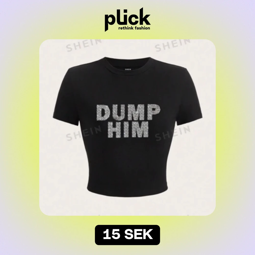 croppad svart t-shirt från shein med texten ”DUMP HIM”. Storlek M, men mer som S. Använd 1 gång.