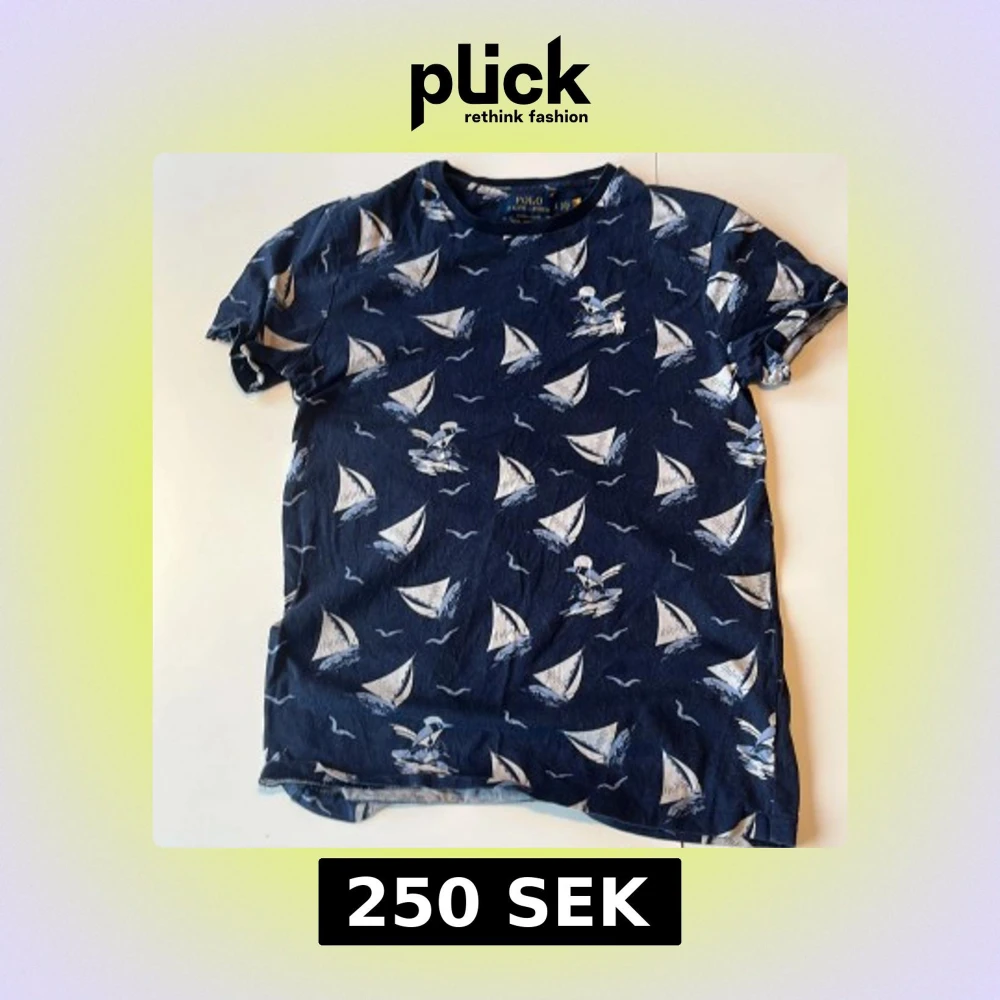 Mörkblå t-shirt från Polo Ralph Lauren med custom slim fit. T-shirten har ett marint mönster med vita segelbåtar och fåglar samt broderad logga på bröstet. Perfekt för dig som gillar en avslappnad men ändå stilren look. Står S men funkar nog också på XS. Pris går att diskuteras såklart 👍