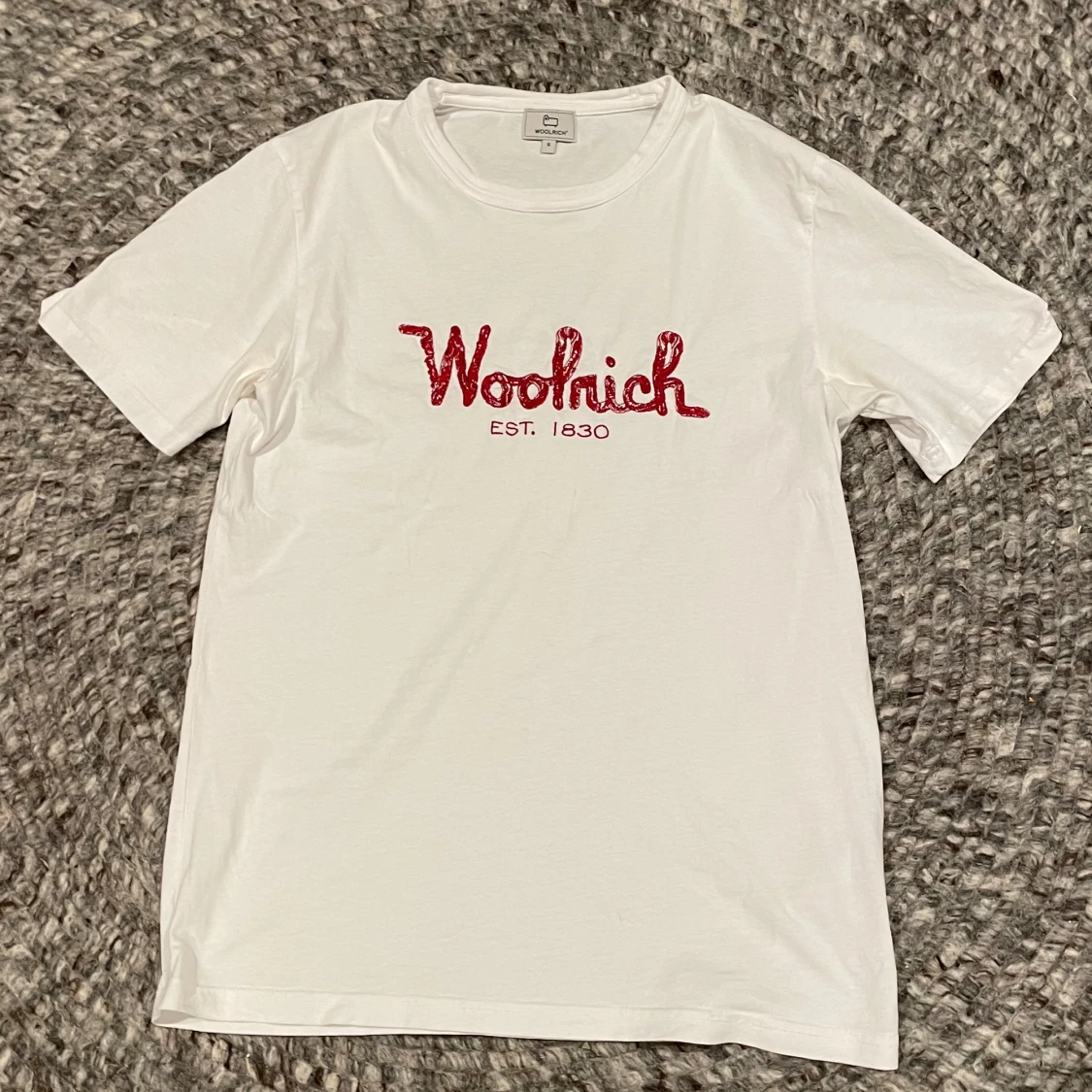 T-shirt från Woolrich med broderi. T-shirten är perfekt nu till våren och sommaren! Nypris ca. 800kr. Hör av er vid minsta fråga eller fundering!