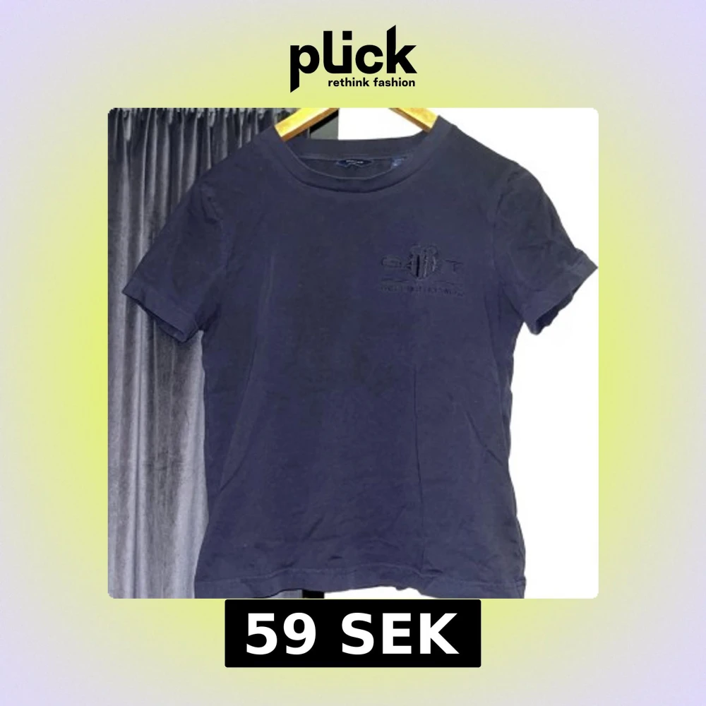 Snygg mörkblå t-shirt från GANT med broderad logga på bröstet. Perfekt för en casual look. Använd max 5 gånger och inga defekter förekommer💕