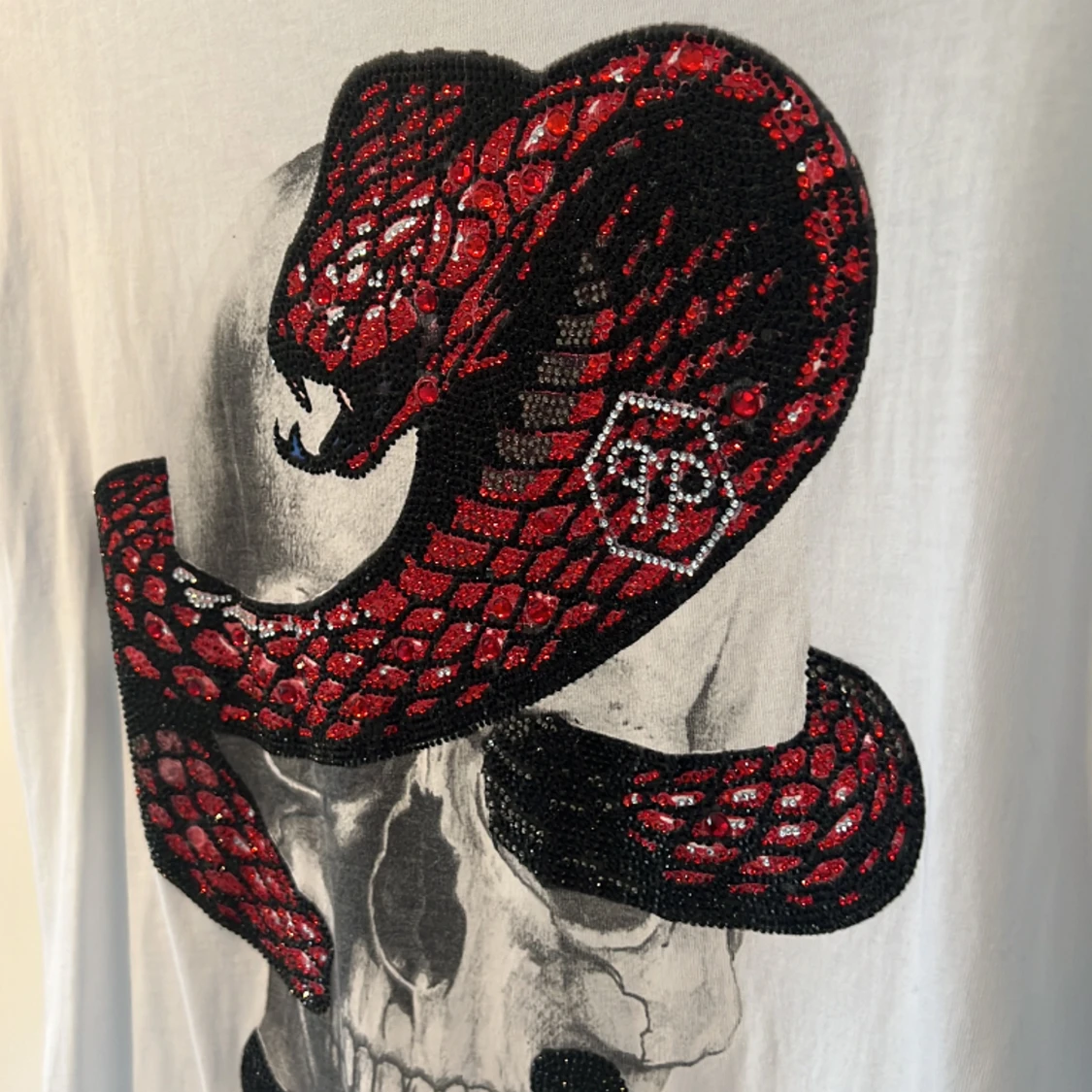 Philipp Plein Snake Skull Print T-shirt vit. Storlek S. Plagget är i hyfsat bra skick. Pris: 799kr, (pris går att diskutera) Vid frågor, kom PM!